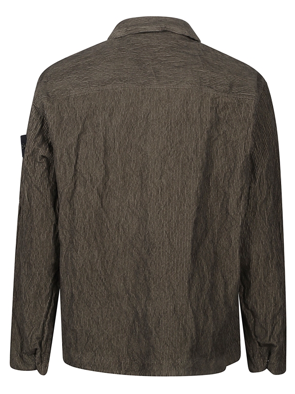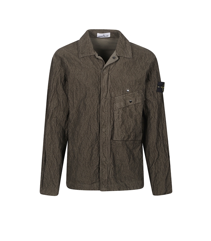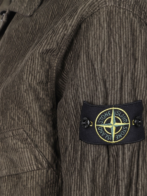 Overshirt in robusto fustagno di cotone con tasca applicata sul petto, polsini regolabili con automatico, chiusura con automatici. Modello tinto in capo con un agente antigoccia.