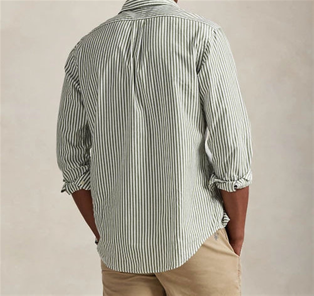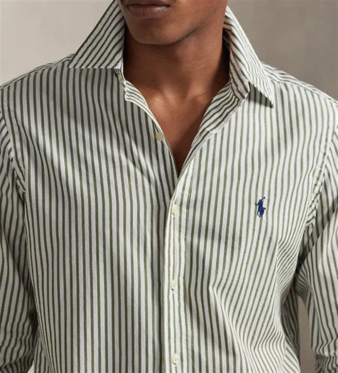 Questa camicia a righe in popeline di cotone viene lavata sia come tessuto che come capo finito per ottenere una maggiore morbidezza. Il modello presenta il nostro iconico pony ricamato sul lato sinistro del torace per una nota esclusiva. Custom-Fit: una silhouette sagomata, a metà tra i modelli Classic-Fit e Slim-Fit. Taglio sagomato in vita. La taglia M ha una lunghezza di 80 cm sul retro, spalla di 46,5 cm, torace di 112 cm e maniche di 87,5 cm. La lunghezza della manica è misurata a partire dal centro della nuca. Collo button-down. Cannoncino con bottoni. Maniche lunghe con polsini con bottoni. Carré posteriore diviso con pieghe a cannoncino per garantire una vestibilità confortevole e una maggiore libertà di movimento. Esclusivo pony ricamato sul lato sinistro del torace. 100% cotone. Lavabile in lavatrice. Importato.