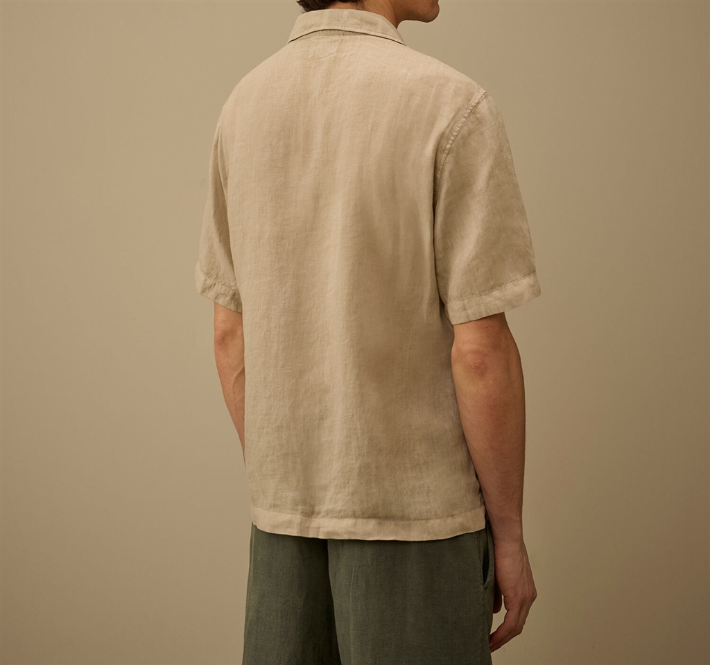 CMSH258A-110533G904 LINEN BOXY SHORT SLEEVE BUTTON SHIRT DOVE GREY