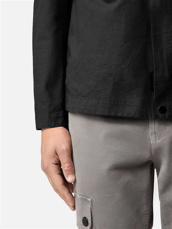 Overshirt in cotone ripstop biologico, caratterizzato da tasche sul petto con automatico e polsini regolabili con automatico. Chiusura con zip a doppio cursore nascosta e bottoni automatici. Modello tinto in capo.Overshirt in cotone ripstop biologico. Modello tinto in capo.