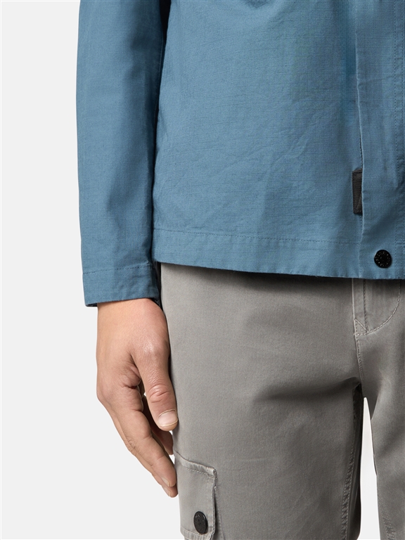 Overshirt in cotone ripstop biologico, caratterizzato da tasche sul petto con automatico e polsini regolabili con automatico. Chiusura con zip a doppio cursore nascosta e bottoni automatici. Modello tinto in capo.Overshirt in cotone ripstop biologico. Modello tinto in capo.
