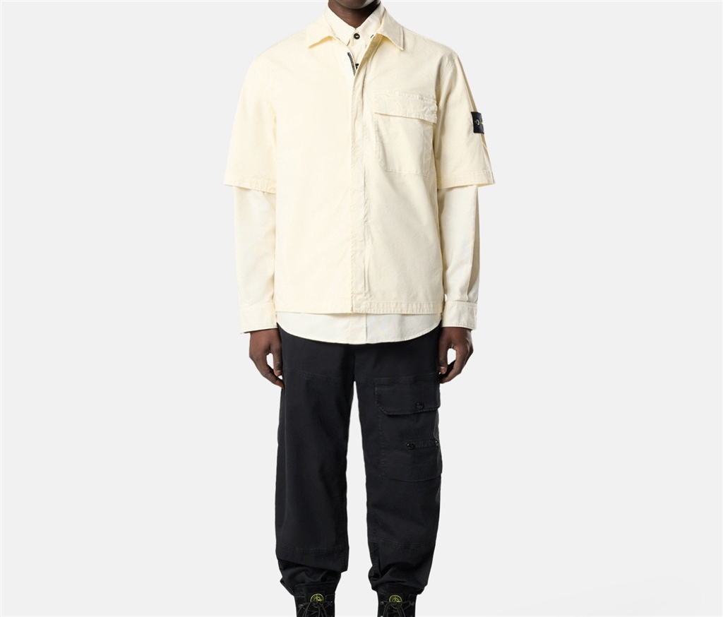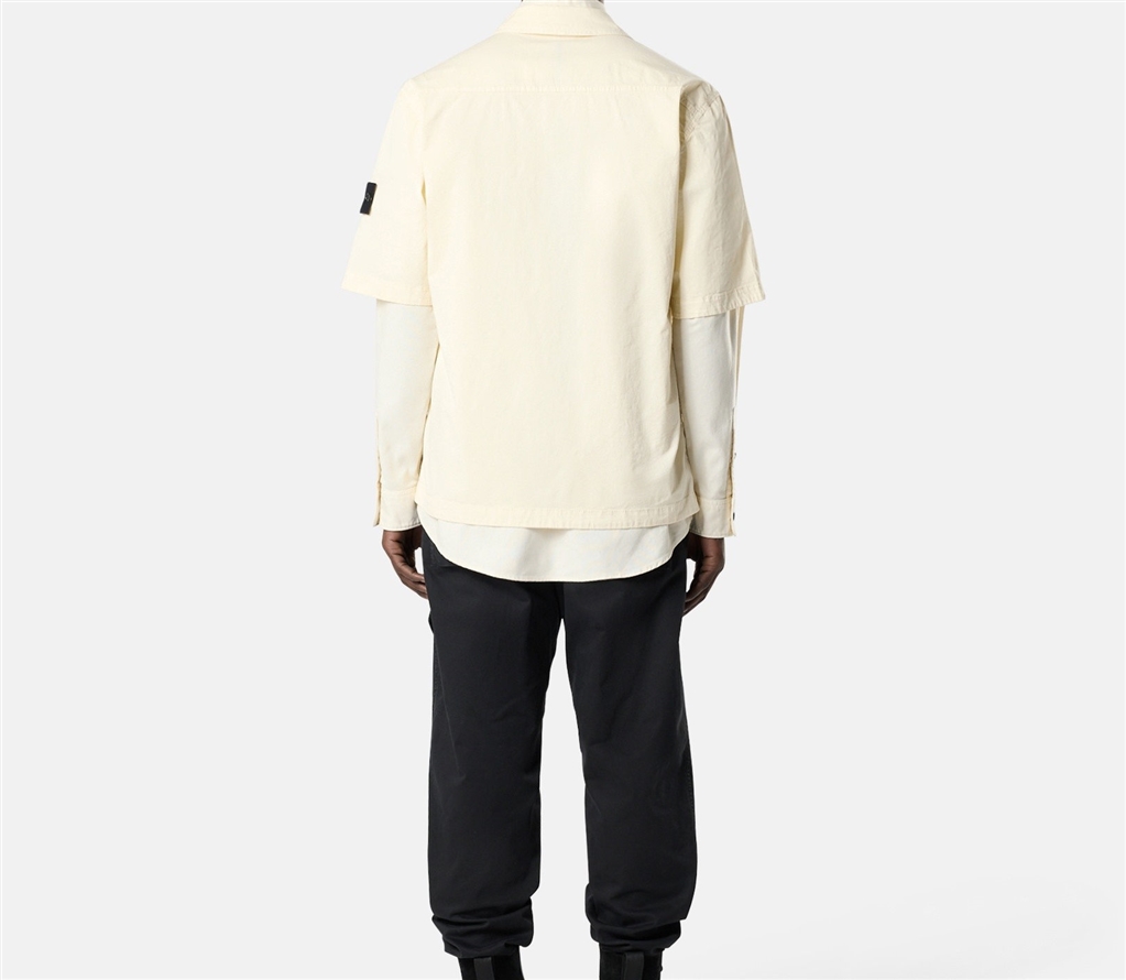 Camicia a manica corta in twill di cotone biologico stretch, con tasca sul petto a doppio scomparto e chiusura con zip a doppio cursore. Modello tinto in capo.Camicia a maniche corte in twill di cotone biologico stretch. Modello tinto in capo.