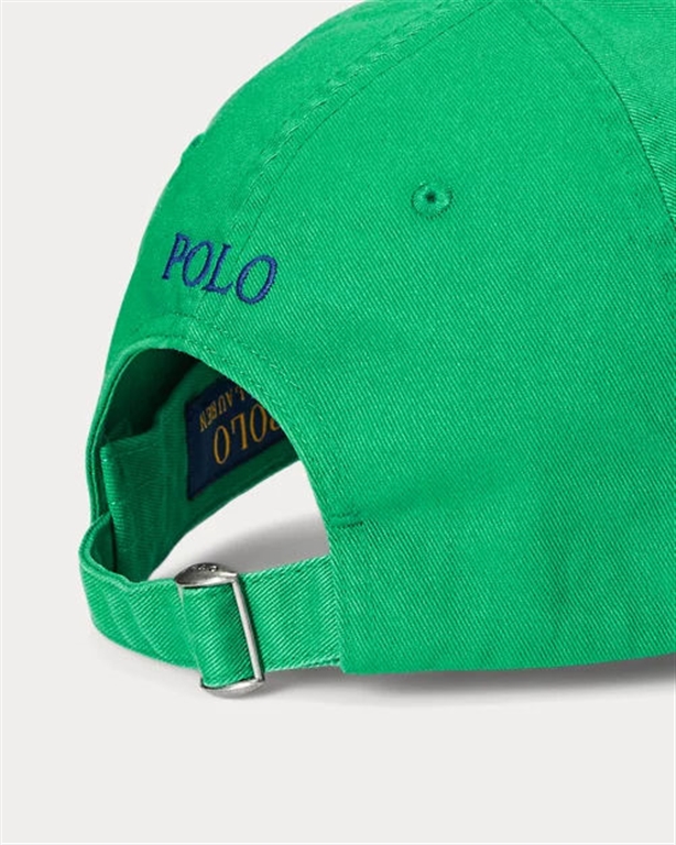 Realizzato con 982 cuciture, il nostro esclusivo pony ricamato dona a questo cappellino da baseball un iconico tocco Polo. Ralph Lauren collabora con Better Cotton" per migliorare la coltivazione del cotone in tutto il mondo. Better Cotton insegna ai coltivatori a utilizzare l'acqua in modo efficiente, a prendersi cura della salubrità del suolo e dell'habitat naturale, a ridurre l'uso dei prodotti chimici più nocivi e ad applicare i principi di un lavoro dignitoso. Visiera cucita. Design a sei pannelli. Occhielli di aerazione ricamati. Fascia assorbi-sudore all'interno. Esclusivo pony ricamato sul davanti. Ricamo "Polo" e listino con fibbia sul retro. Circonferenza interna di 59,1 cm. Questo prodotto è ottenuto attraverso un sistema di bilancio di massa e pertanto potrebbe non contenere Better Cotton. Esterno: 100% cotone. Lavare a mano. Importato.