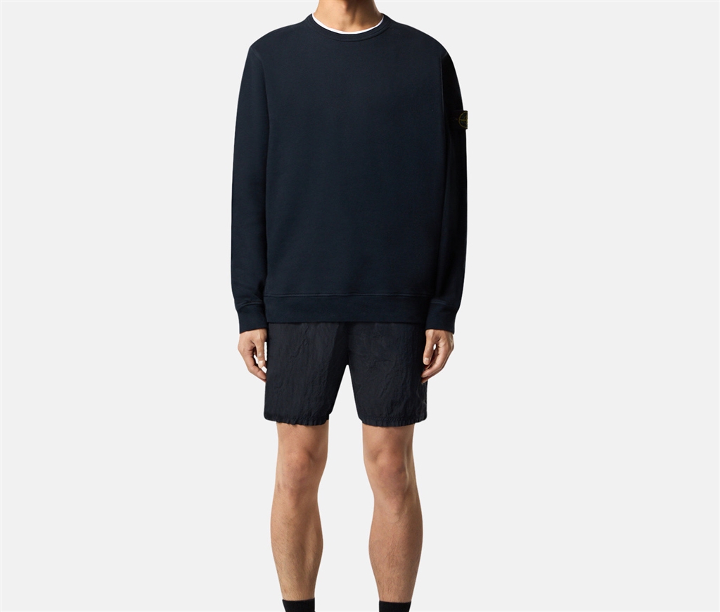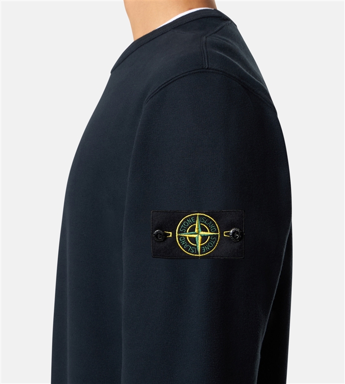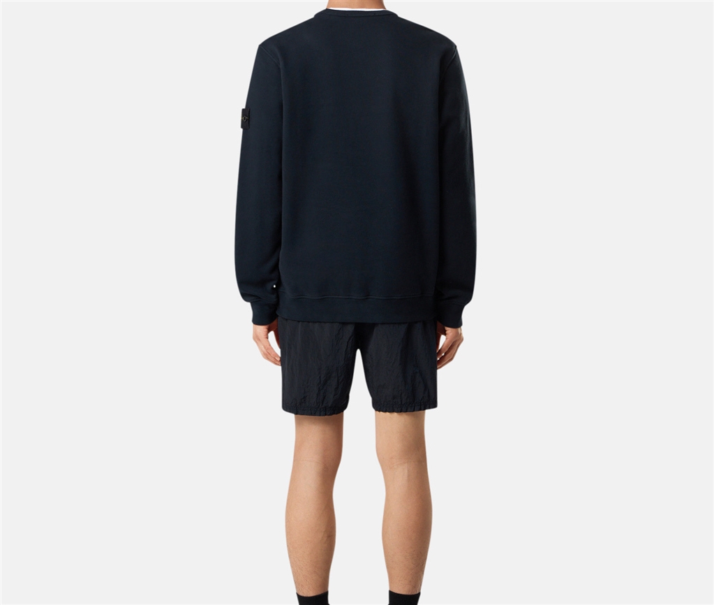 Felpa girocollo in cotone biologico garzato con inserti triangolari a costine sulle spalle e sui fianchi. Modello tinto in capo.Felpa girocollo in cotone biologico garzato. Modello tinto in capo.