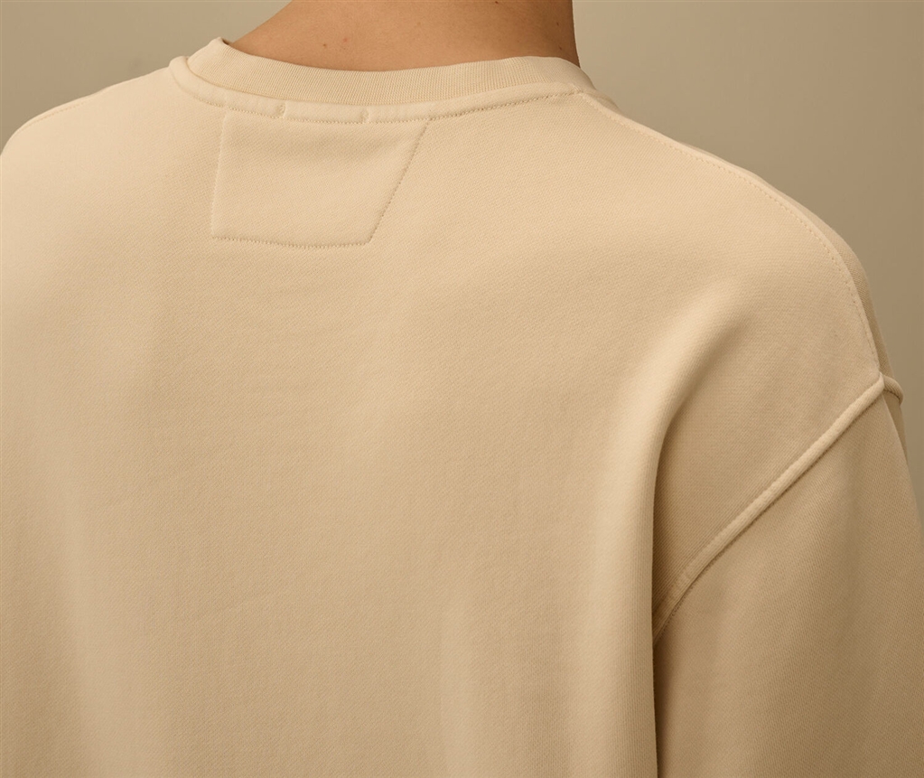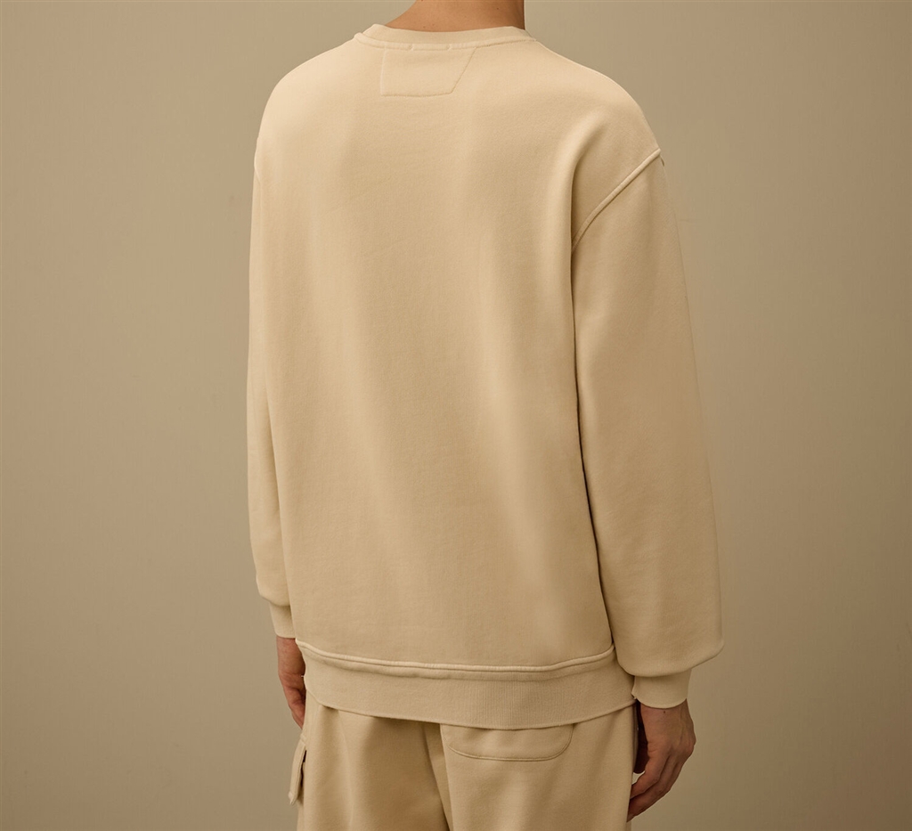 Felpa realizzata in fleece di cotone diagonale di peso medio, un tessuto che assicura comfort quotidiano. Il modello presenta un girocollo a costine, logo ricamato sul petto e polsini e orlo a costine. La tintura Resist Dyed utilizza coloranti diretti su capi pretrattati con resina cationica, creando un effetto cromatico irregolare che valorizza texture e dettagli. Regular fit.