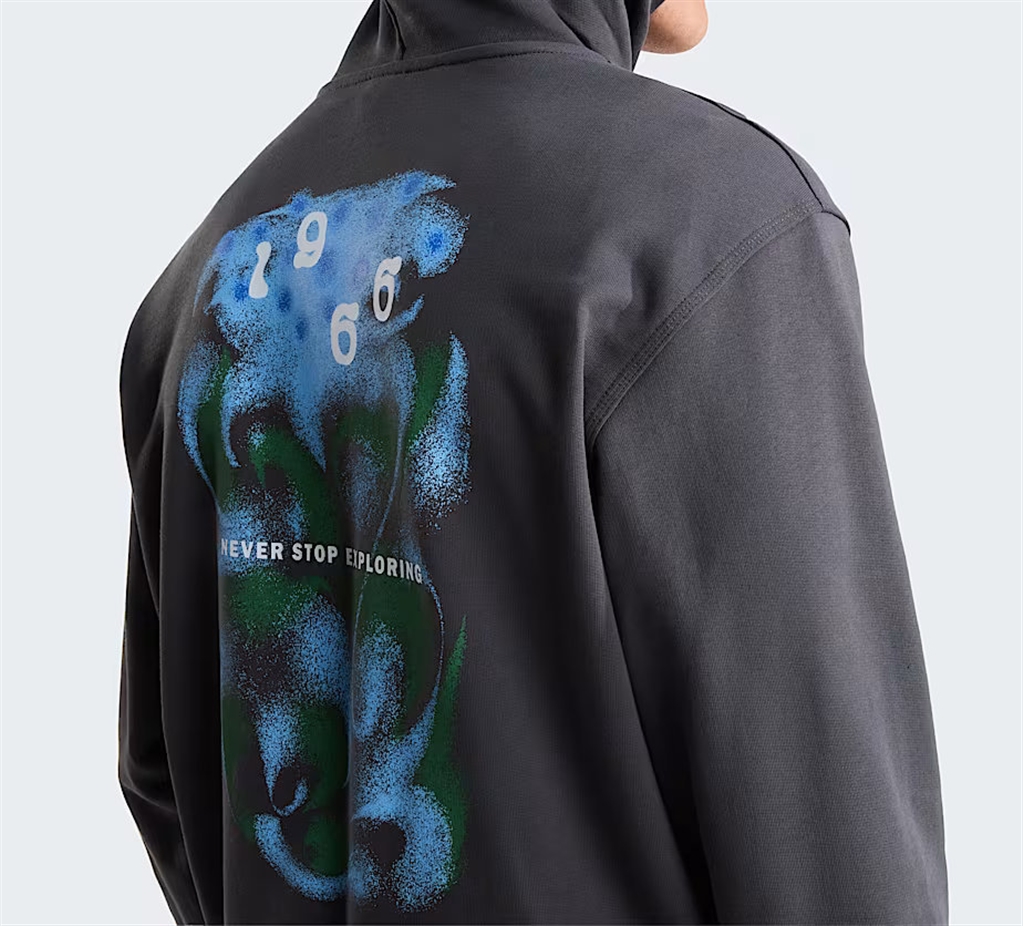 NF0A8GAJRHI1 FELPA CON CAPPUCCIO 1966 MOTION RELAXED CON GRAFICA UNISEX ANTHRACITE GREY