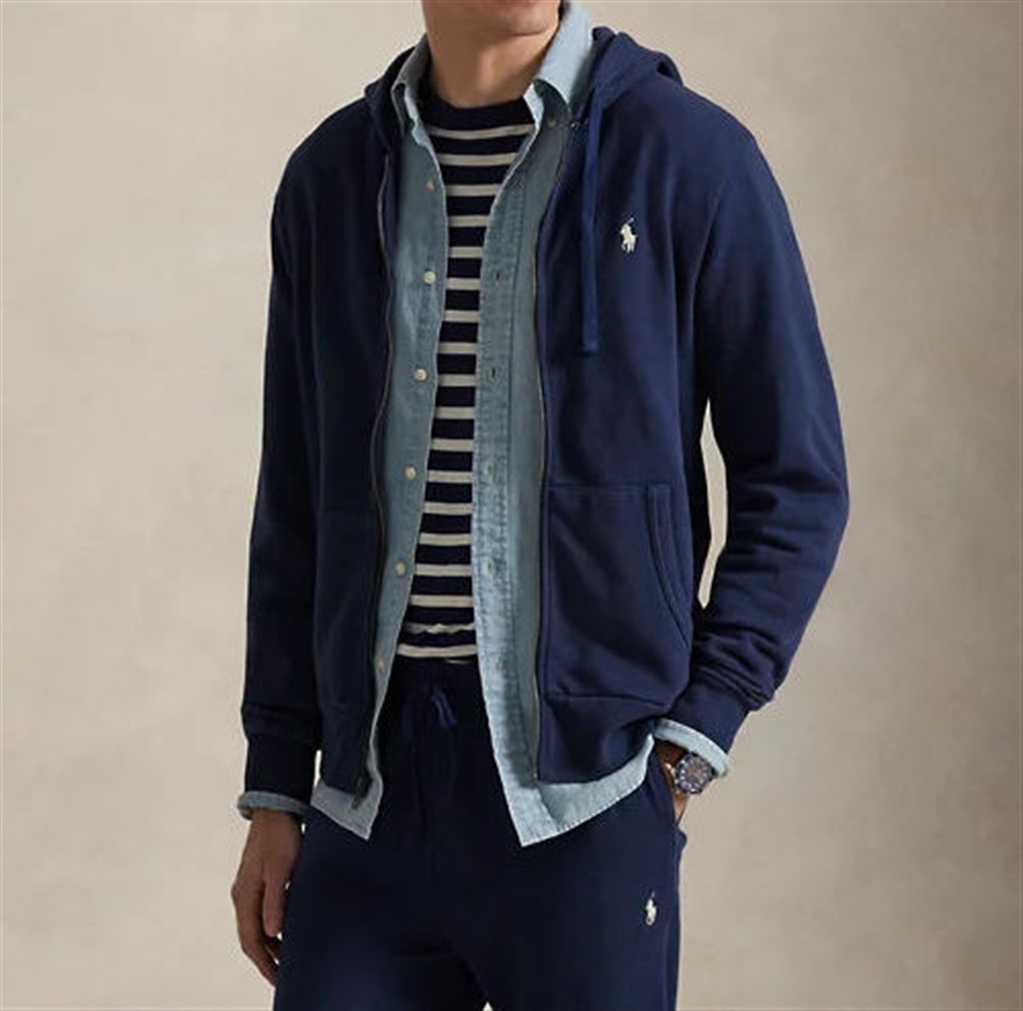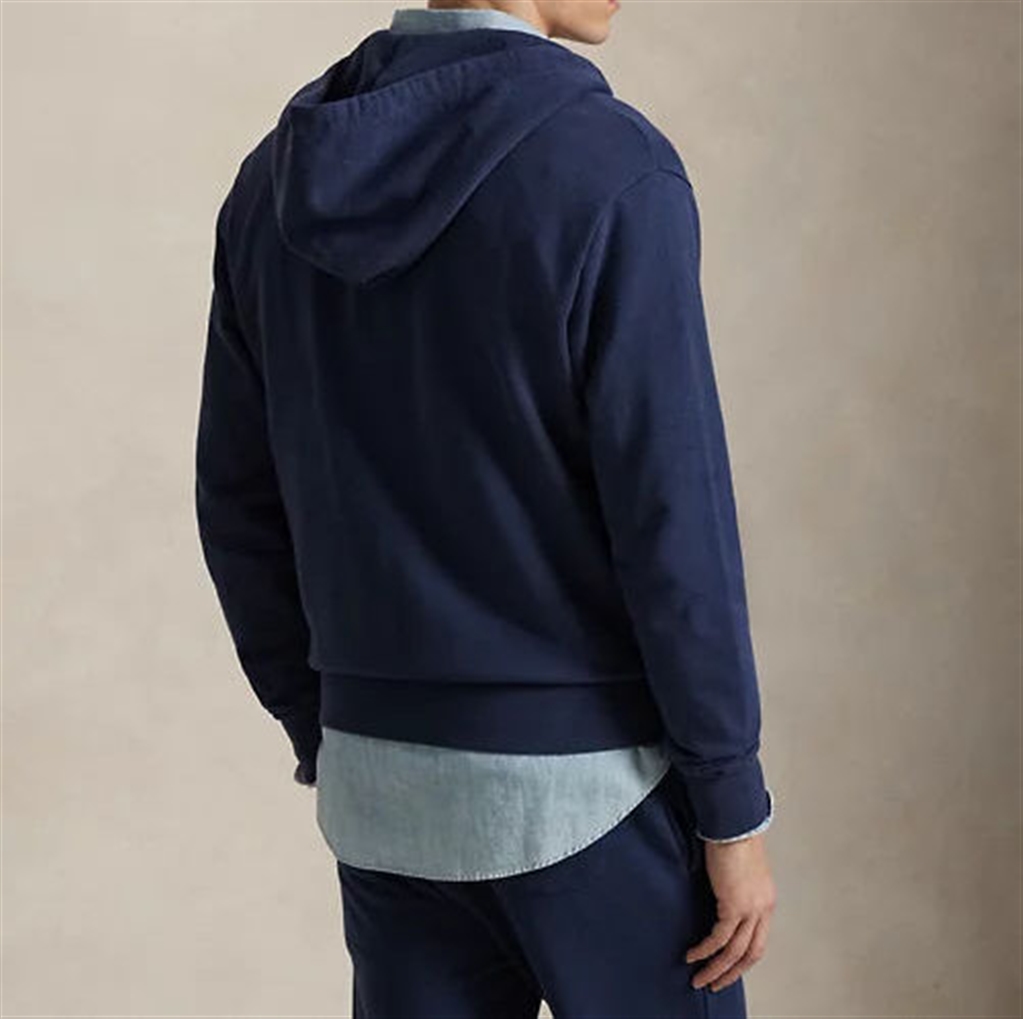 Realizzato in cotone loopback, più leggero della classica felpa RL, questo modello con cappuccio presenta un interno morbidissimo, come fosse di spugna, e un affascinante aspetto vissuto, frutto di un lavaggio speciale. La taglia M ha una lunghezza di 69,8 cm (sul davanti e sul retro), spalla di 47 cm, torace di 113 cm e maniche di 88,9 cm. La lunghezza della manica è misurata a partire dal centro della nuca. Cappuccio con coulisse. Chiusura con cerniera. Maniche lunghe con polsini a coste. Tasche a marsupio separate. Orlo a coste. Esclusivo pony ricamato sul lato sinistro del torace. Esterno, fodera del cappuccio e finitura a coste: 100% cotone. Lavabile in lavatrice. Importato. Scegliendo i nostri prodotti in cotone, si supporta il nostro impegno a favore dell'iniziativa Better Cotton", a tutela dei coltivatori del settore e della protezione ambientale. Questo prodotto è ottenuto attraverso un sistema di bilancio di massa e pertanto potrebbe non contenere Better Cotton". Per ulteriori informazioni sul sistema di bilancio di massa, consulta la pagina bettercotton.org/massbalance.