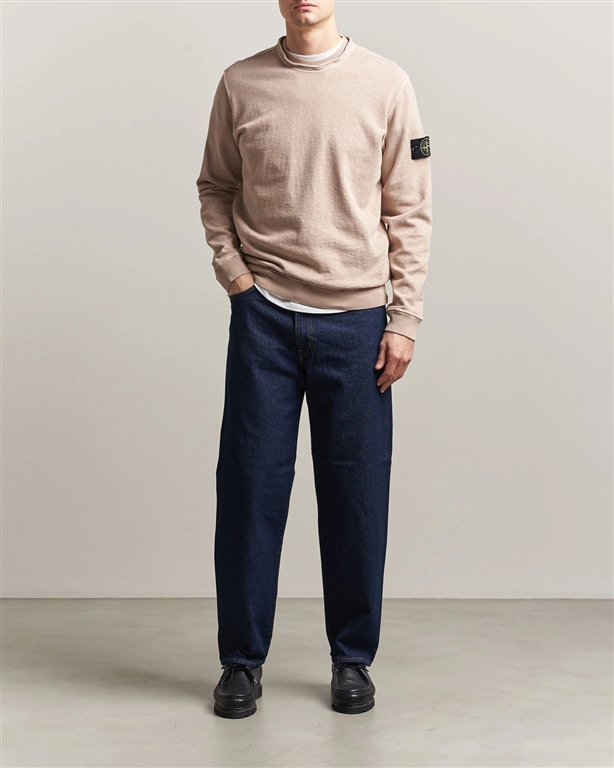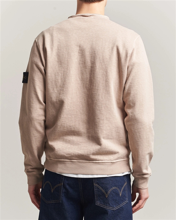 Felpa girocollo vestibilità regular. Felpa girocollo in cotone malfilé dall'effetto fiammato con cuciture overlock e bordi a costine. Pesantezza leggera. Modello tinto in capo con effetto OLD, per un aspetto leggermente vissuto.