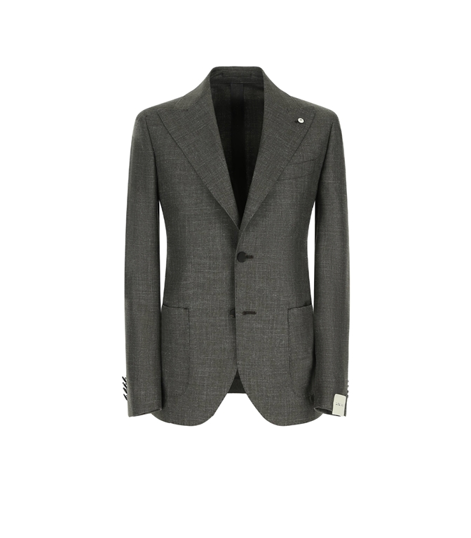 Giacca monopetto da uomo a due bottoni realizzata in un ricercato tessuto dalla texture materica, caratterizzata da una raffinata sfumatura di tortora che dona al capo profondità e un'eleganza sobria ma contemporanea. Il design è definito da ampi revers a lancia, tasche a toppa capienti sui fianchi e un taschino a barchetta sul petto, tutti elementi che ne esaltano la fattura artigianale. La costruzione leggermente destrutturata e l'assenza di fodera offrono un comfort superiore e una vestibilità naturale, rendendola ideale per un look smart-casual raffinato e leggero, perfetto per le mezze stagioni. I dettagli curati, come il pin sul revers e le asole aperte ai polsi, testimoniano un'attenzione sartoriale d'eccellenza.