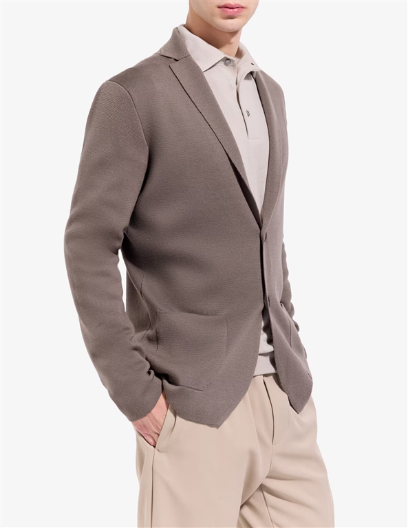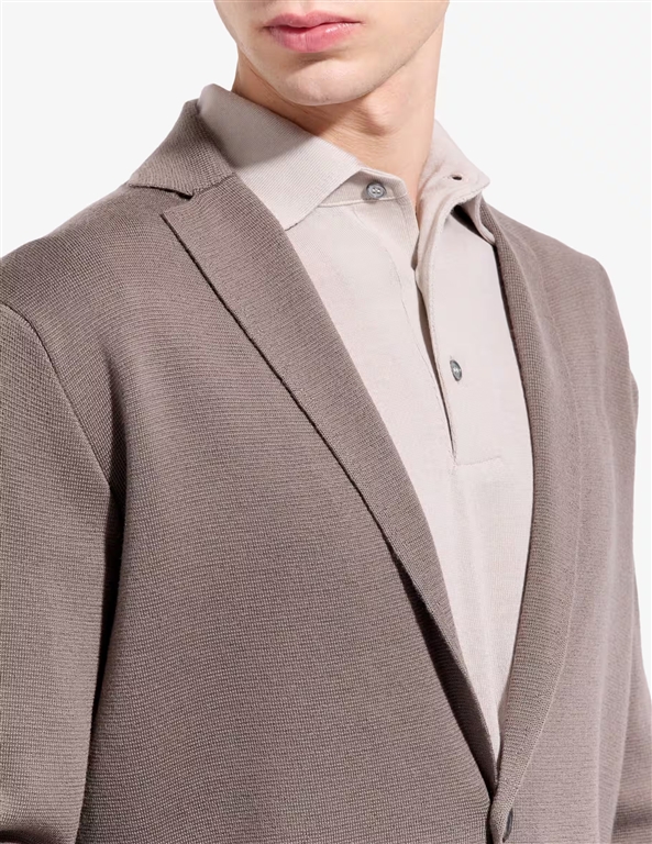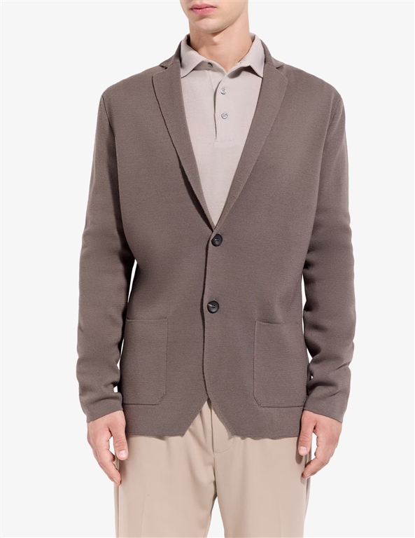 Questa giacca in maglia a due bottoni unisce leleganza del blazer al comfort superiore del 100% lana vergine. Caratterizzata da una raffinata tinta unita color tortora e una vestibilità regular, presenta classici revers e pratiche tasche applicate che ne esaltano lo stile versatile e disinvolto. Un capo essenziale per un guardaroba smart-casual che non rinuncia alla qualità dei materiali naturali.