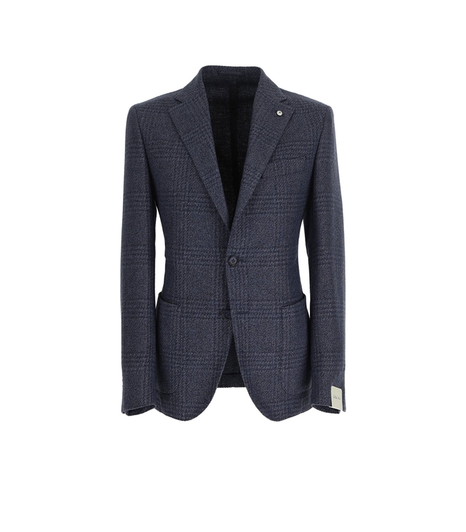La giacca è un modello monopetto, sfoderato, con rever normale e tasche applicate. Realizzata in tessuto tinto capo dal motivo Principe di Galles, pesa 360 grammi ed è un tessuto fermo, che dona struttura e un aspetto elegante. Presenta spacchi laterali per una vestibilità più comoda e moderna.