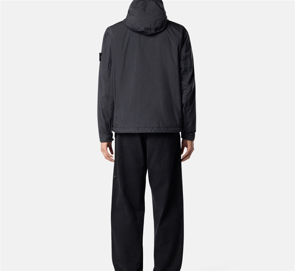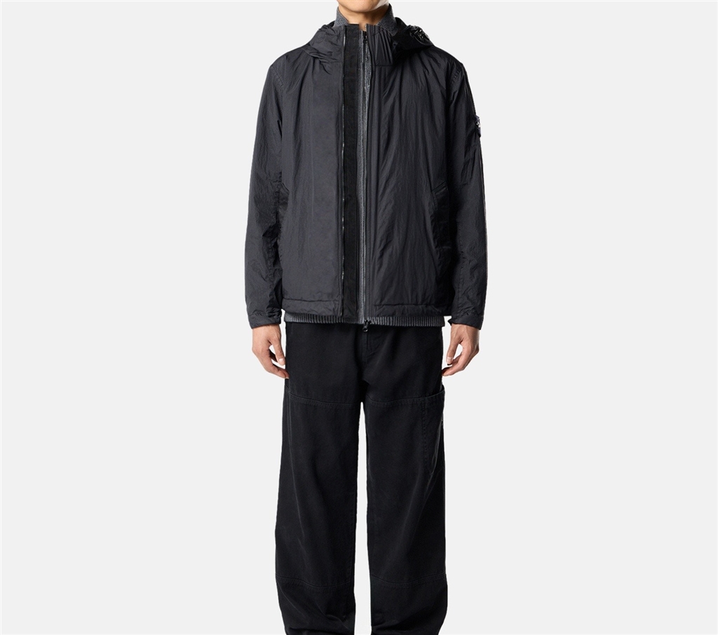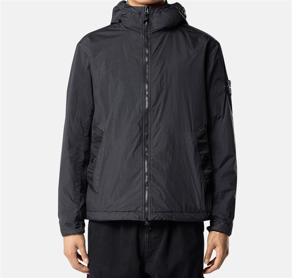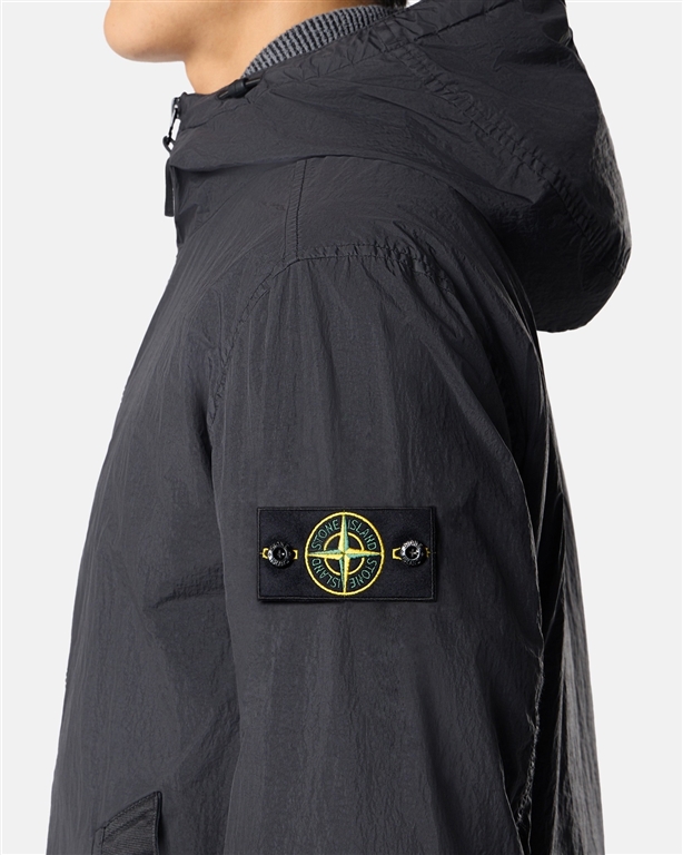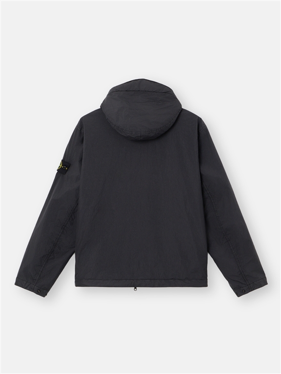 Giacca con cappuccio in reps di nylon leggero riciclato dall'aspetto stropicciato, caratterizzata da tasche con bottoni automatici, polsini regolabili con bottoni automatici e zip a doppio cursore. Modello tinto in capo con antigoccia.Giacca con cappuccio in reps di nylon leggero riciclato con struttura della trama molto fitta. Il rivestimento interno in resina la rende resistente al vento e leggermente resistente allacqua. Grazie al trattamento con resina, il colore penetra nel materiale in modo non uniforme, conferendo alla superficie un aspetto stropicciato. Modello tinto in capo con laggiunta di uno speciale agente antigoccia.