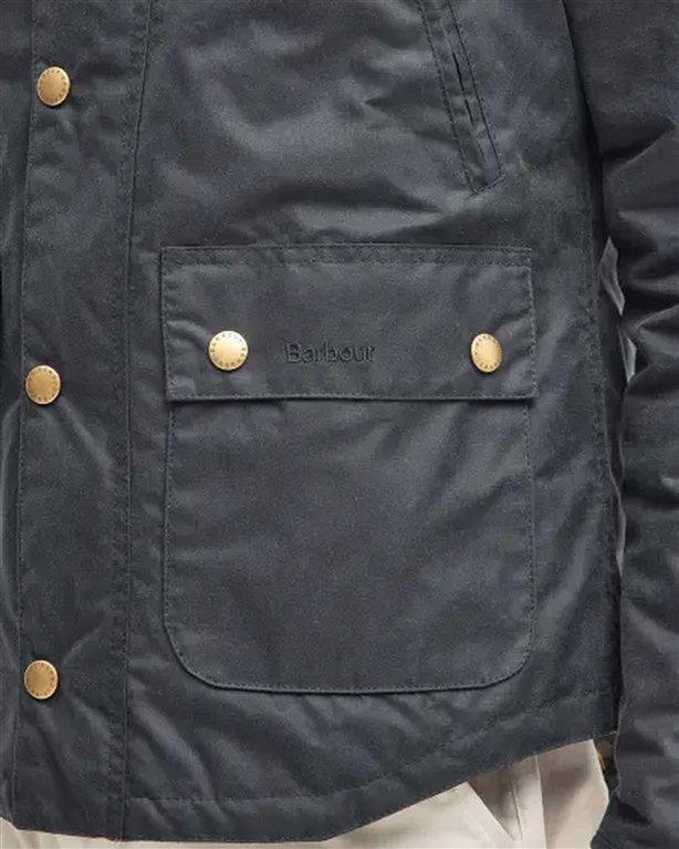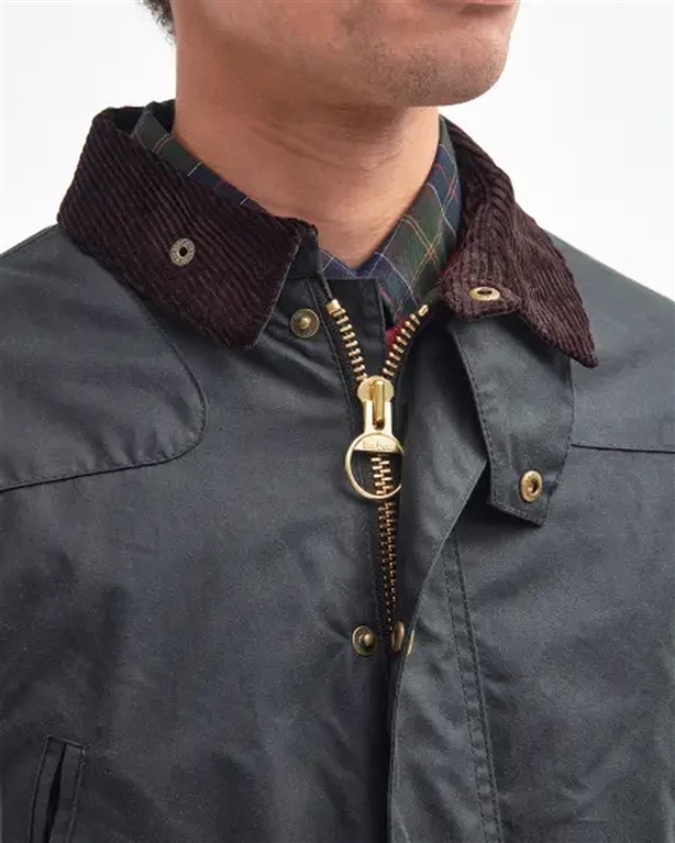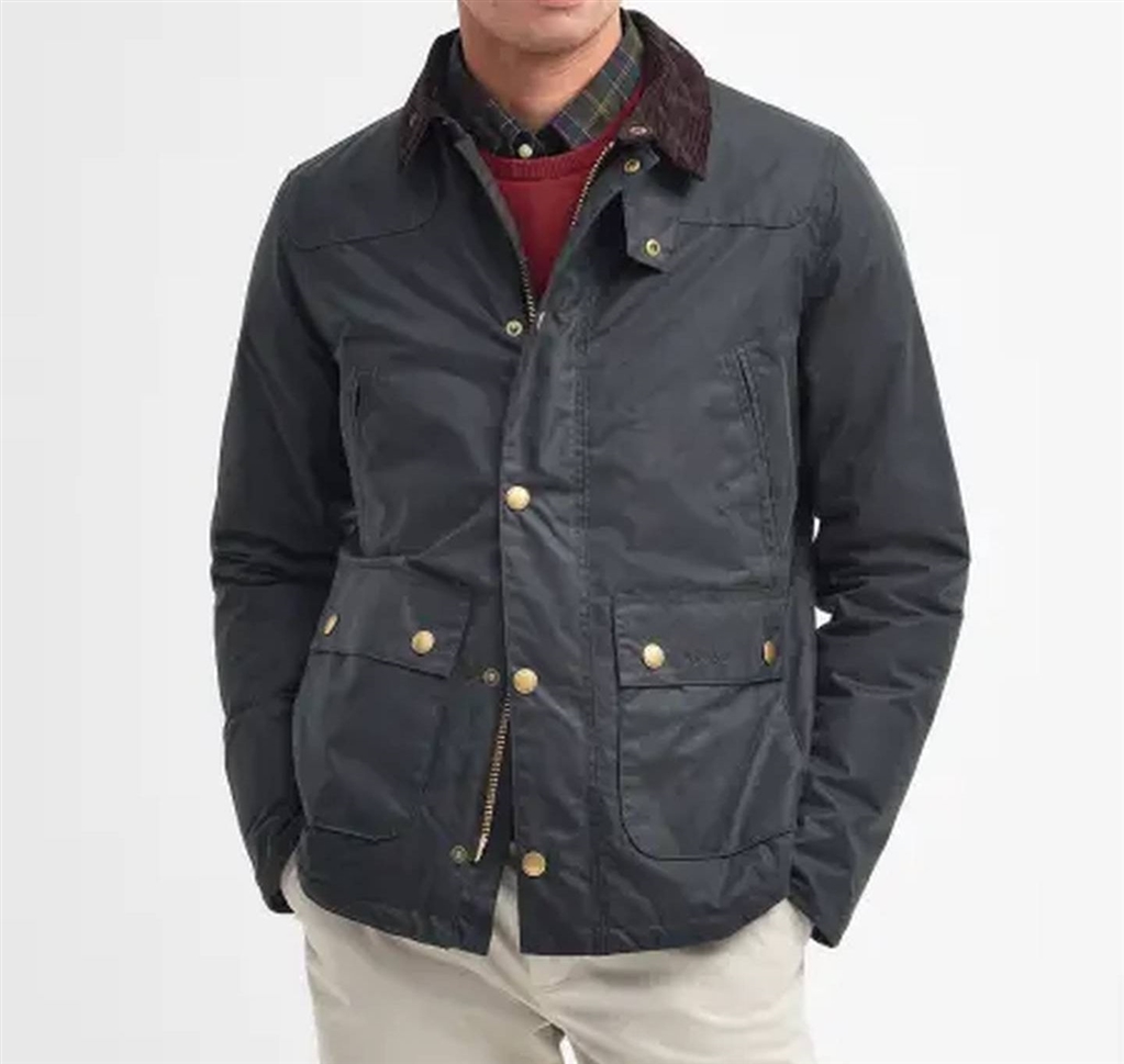 La giacca Reelin, rivisitazione invernale dell'iconica formula Barbour, è realizzata in cotone cerato e presenta una fodera trapuntata con il nostro caratteristico disegno tartan antico. Dotata di toppe sulle spalle, colletto in velluto a coste pesante e tasche scaldamani con zip, la giacca è rifinita con il logo ricamato sulla patta della tasca sinistra.