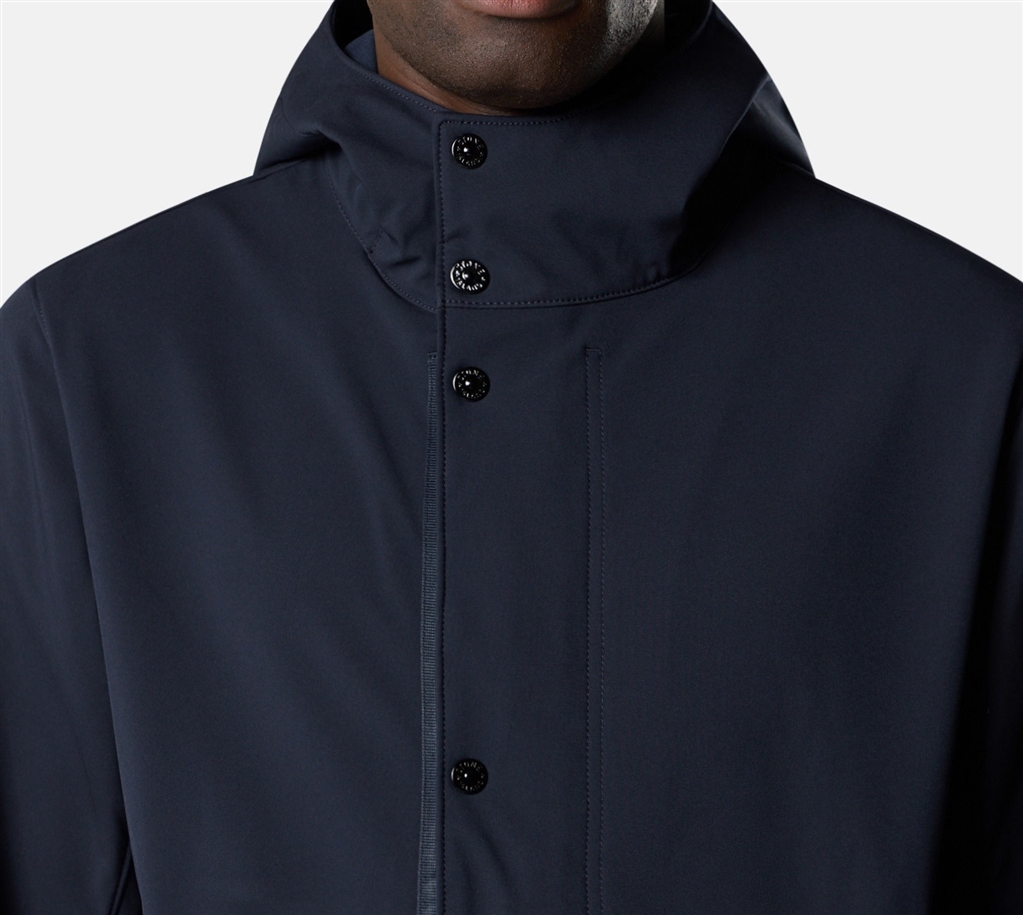 Giacca con cappuccio in materiale tecnico a tre strati con colonna d'acqua di 8000 mm, dotata di tasche con zip, bordi a costine e zip a doppio cursore.Giacca con cappuccio in materiale tecnico a tre strati con colonna dacqua di 8000 mm. La superficie esterna in tela di poliestere stretch è tessuta con filati a tecnologia e.dye Waterless Color System", linnovativo sistema di saturazione del colore dei filati. Il tessuto è laminato su una membrana interna traspirante e resistente all'acqua e al vento, protetta da uno strato di supporto in jersey di poliestere testurizzato. La struttura esterna del materiale offre al capo comfort e flessibilità impareggiabili.