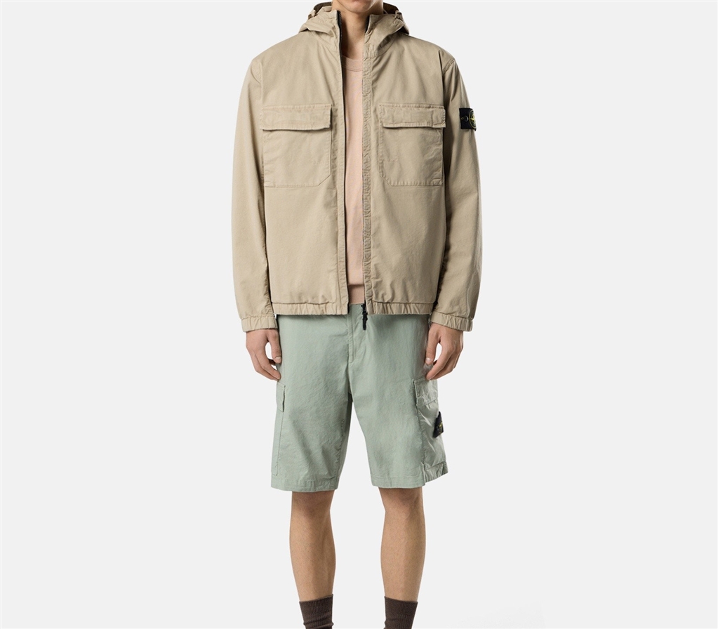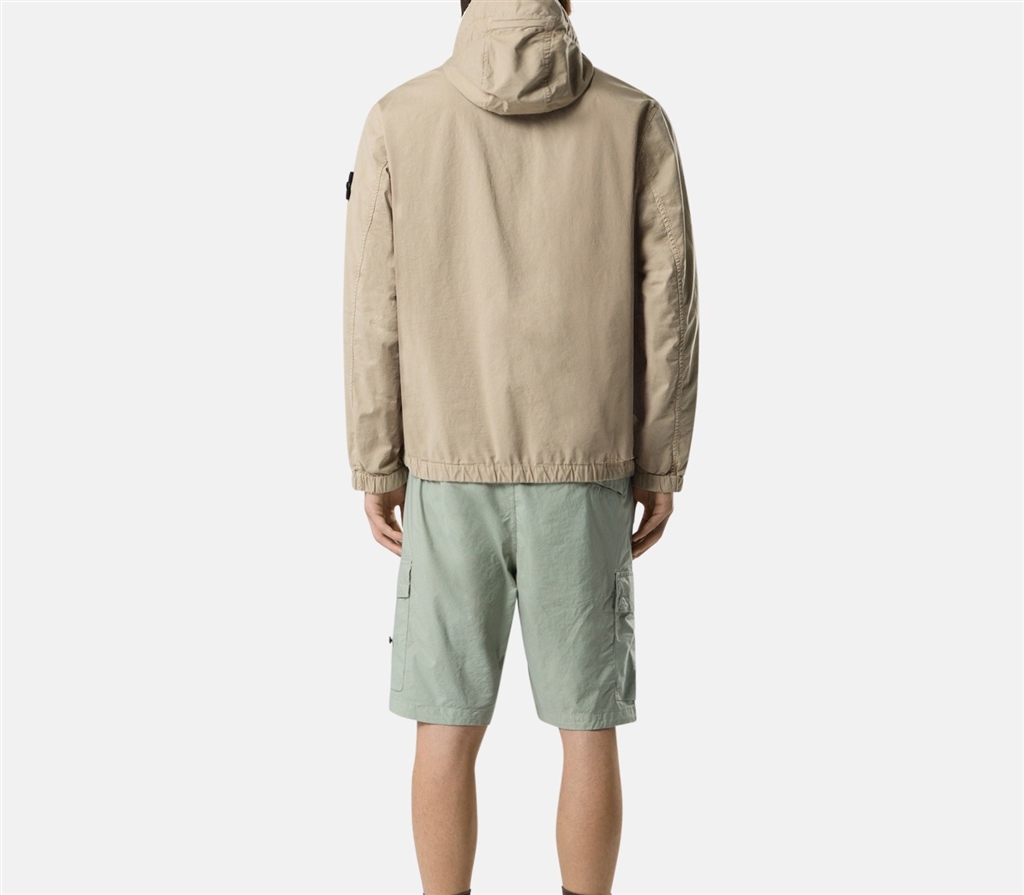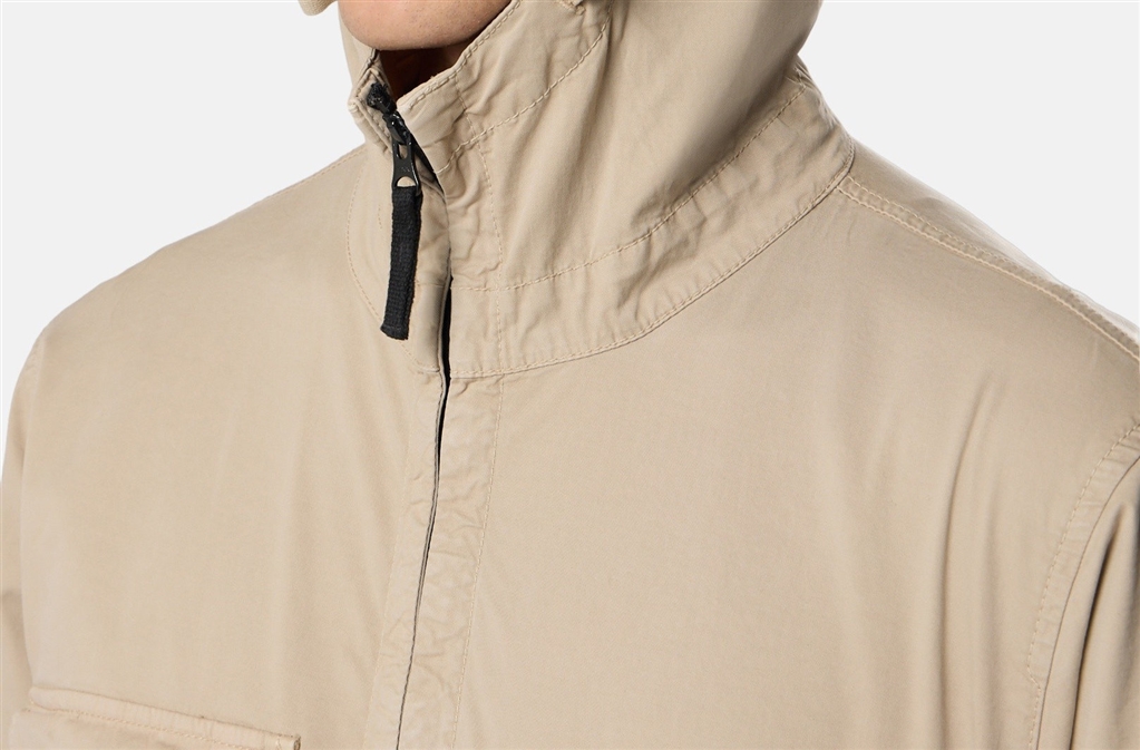 Giacca con cappuccio in twill di cotone biologico stretch con tasche a doppio scomparto sul petto, tasche frontali, bordi elasticizzati e zip a scomparsa sul collo. Modello tinto in capo con antigoccia.Giacca con cappuccio in twill di cotone biologico stretch. Modello tinto in capo con laggiunta di uno speciale agente antigoccia.