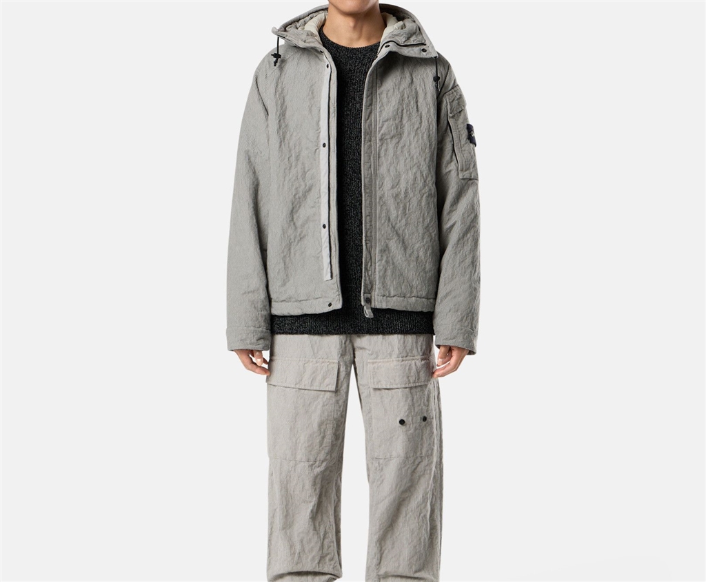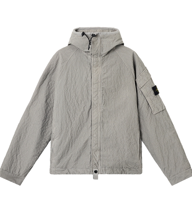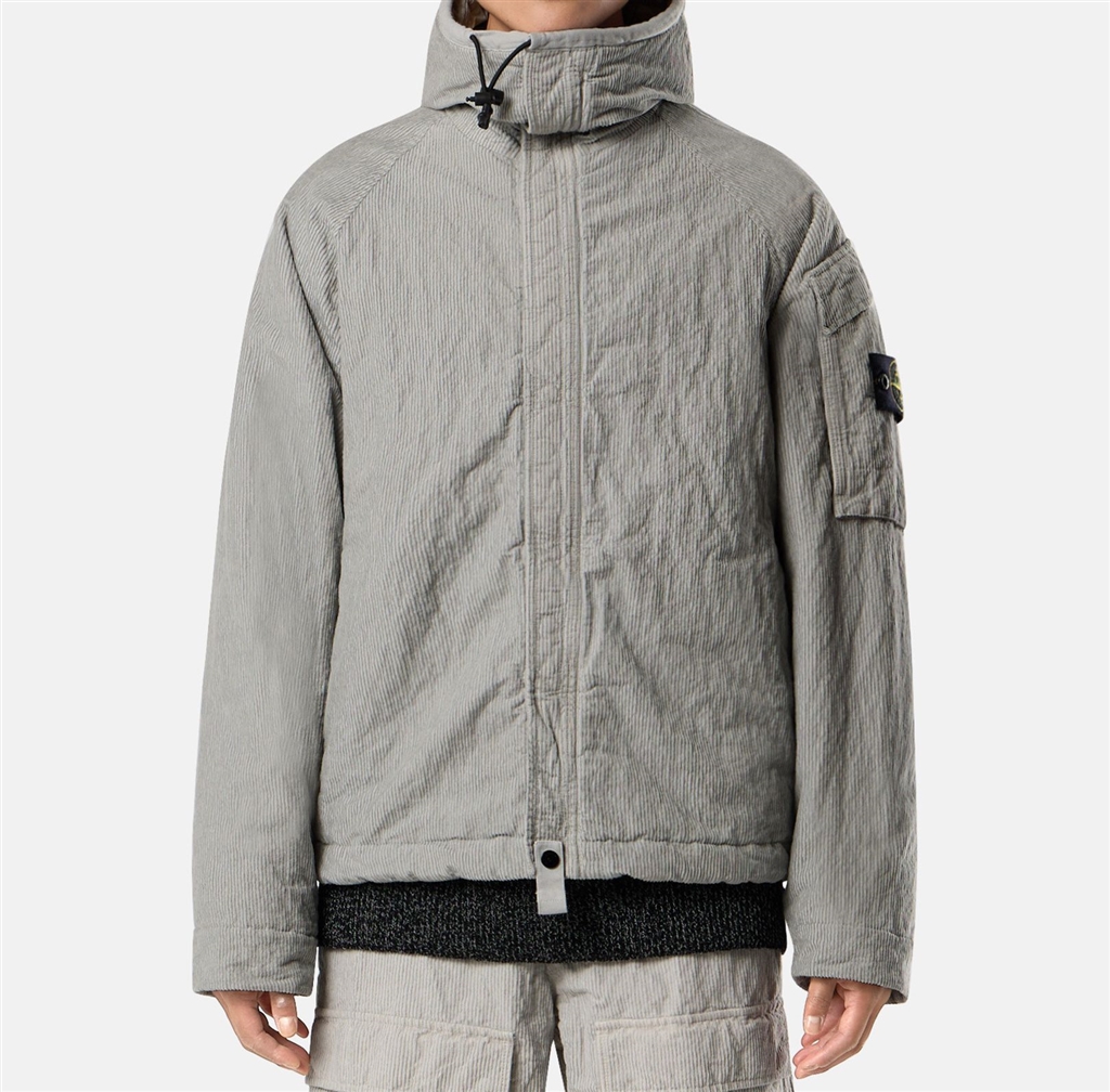 Giacca con cappuccio in velluto a coste 500 di cotone e nylon, dotata di tasche con zip, tasca con patta sulla manica sinistra e chiusura con zip a doppio cursore. Modello tinto in capo con un agente antigoccia.Giacca con cappuccio in velluto a coste 500 di cotone e nylon. La trama è realizzata con nylon monofilamento che conferisce al tessuto una mano elastica e un aspetto rugoso. Modello tinto in capo con laggiunta di uno speciale agente antigoccia. Strato interno imbottito.