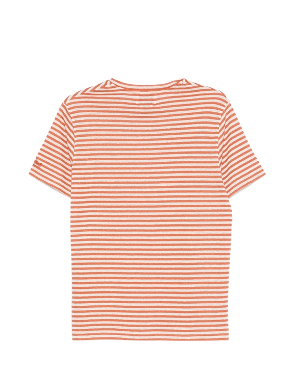Maglia a maniche corte con scollo rotondo e motivo a righe arancioni e bianche
