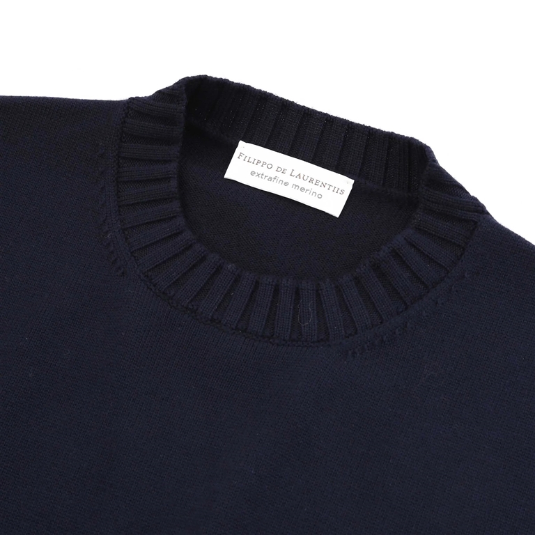 Maglia girocollo in lana merino Filippo De Laurentiis blu navy. Una maglia dallo stile classico, realizzata in Italia da Filippo De Laurentiis. Questa maglia girocollo è realizzata in lana merino extrafine. Collo, polsini e vita a coste. Realizzato in lana merino. Esalta il tuo guardaroba con questa maglia classica di Filippo De Laurentiis.