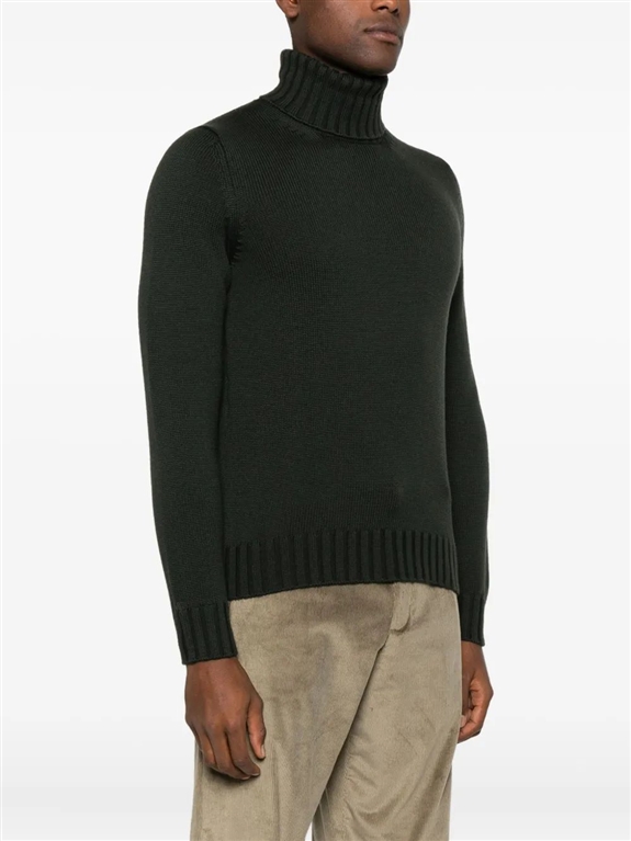 verde scuro collo alto lavorazione in maglia a coste orlo dritto maniche lunghe