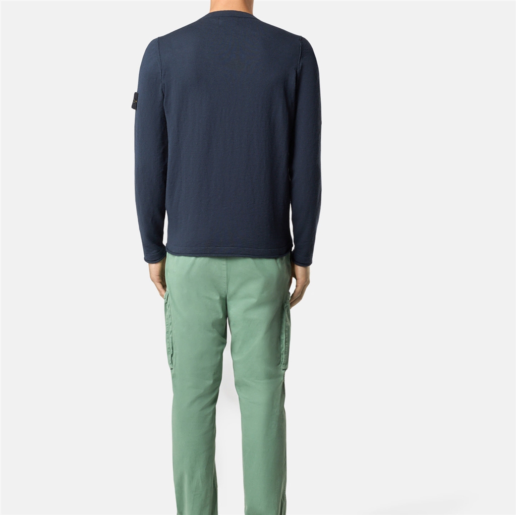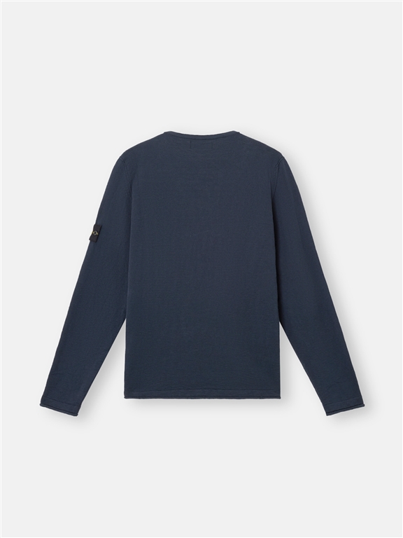 Maglione girocollo in cotone biologico e nylon con piccoli risvolti. Finezza 14.Maglione girocollo in cotone biologico e nylon. Maglia rasata. Finezza 14.