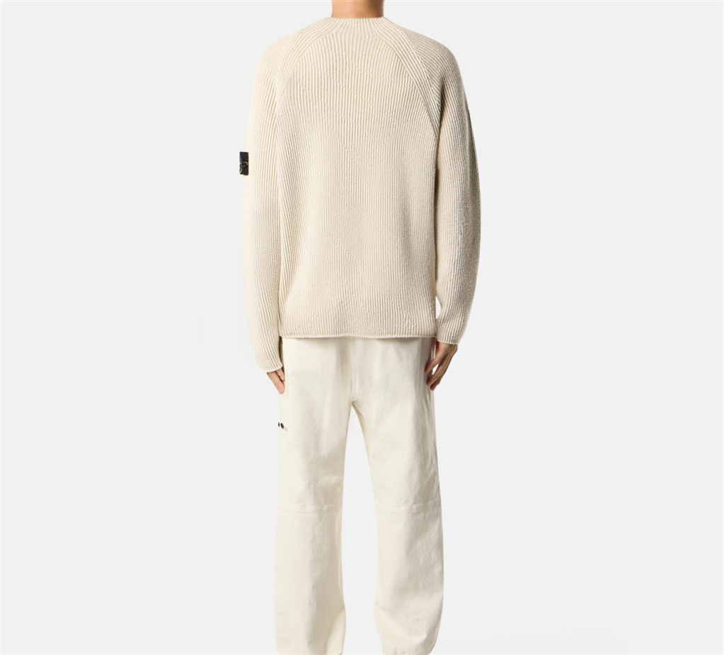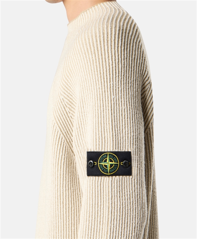 Maglione con collo a lupetto in lana RWS interamente a costine realizzata con due filati a contrasto lavorati con la tecnica vanisé per una maggiore profondità. Maniche raglan. Finezza 7.Maglione con collo a lupetto interamente a costine in lana certificata RWS, realizzato con due filati a contrasto lavorati con la tecnica vanisé per conferire maggiore profondità alla costina e creare contrasti cromatici. Finezza 7. Lo standard Responsible Wool Standard (RWS) descrive e certifica il benessere degli animali e le pratiche di gestione del territorio con riferimento alla produzione di lana, tenendo traccia del materiale certificato a partire dallazienda agricola fino ad arrivare al prodotto finale.
