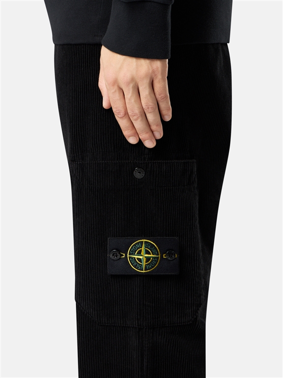 Pantalone in velluto a coste di cotone biologico 800 con tasche multiple con automatici. Modello tinto in capo.Pantalone in velluto a coste di cotone biologico 800. Modello tinto in capo.