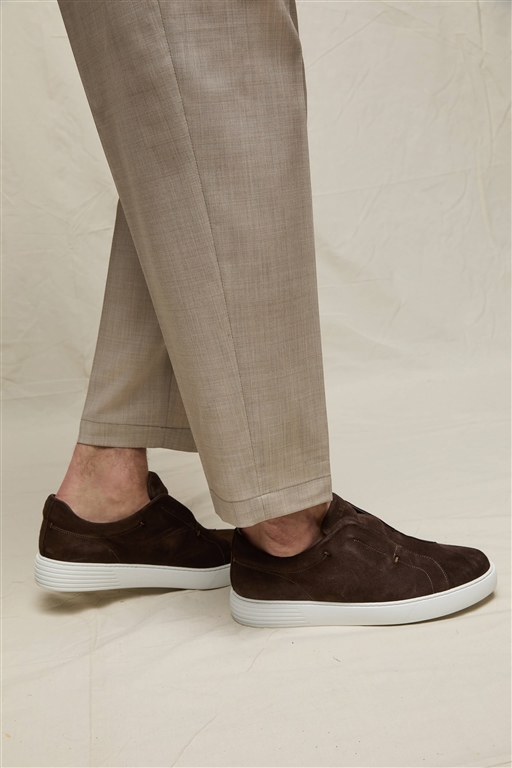 Questo pantalone da uomo in lana vergine con doppia pince a cannoncino rappresenta il perfetto equilibrio tra eleganza e comfort. La vestibilità Baggy e l'elastico sui fianchi garantiscono libertà di movimento, mentre la linea fluida e il fondo da 19 cm conferiscono un'allure sartoriale rilassata.Un capo versatile, ideale per completare outfit eleganti estivi con giacche leggere o maglie in filati naturali.