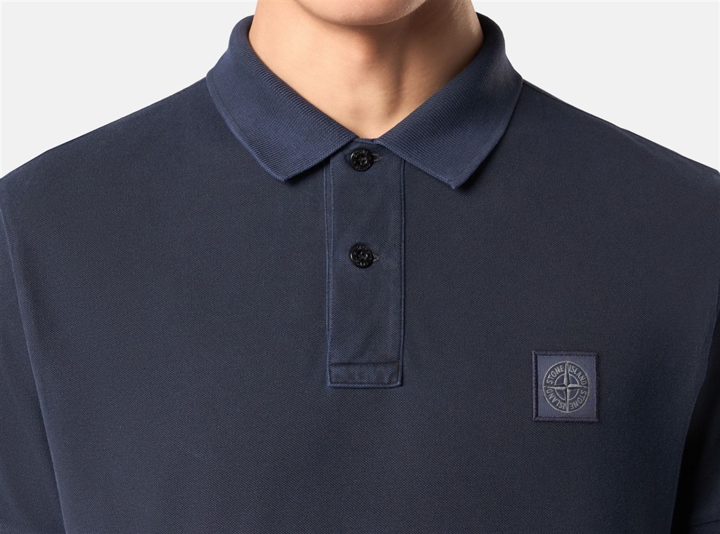 Polo a manica corta con collo con bottoni, in piqué di cotone sovratinto con pigmenti per ottenere un colore intenso, dalleffetto cangiante.Polo a manica corta in piqué di cotone. Tinta in capo e successivamente sovratinta con pigmenti per un colore intenso, dalleffetto cangiante.