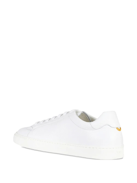 Queste sneakers in pelle martellata bianca uniscono stile e comfort. Presentano una classica chiusura con lacci e poggiano su una resistente suola in gomma. Come mostrato nella foto, sono presentate in un'elegante confezione gialla e sono ideali per un look versatile e quotidiano.