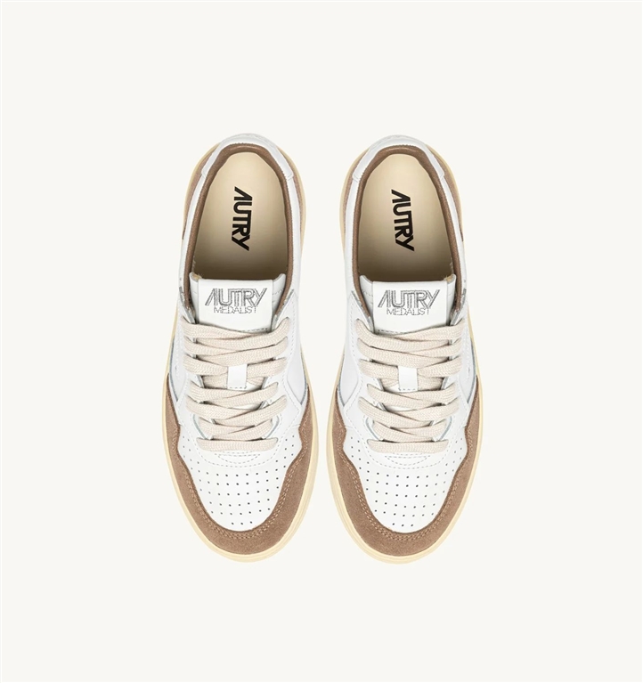 MEDALIST LOW IN PELLE BIANCA E AMAZON E SUEDE BEIGE