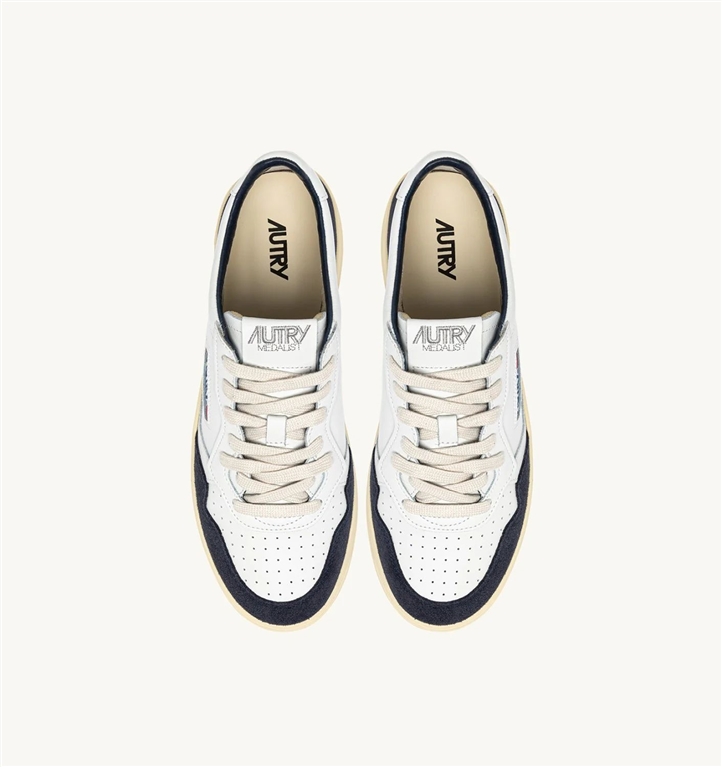 MEDALIST LOW IN PELLE BIANCA E SUEDE OCEANO