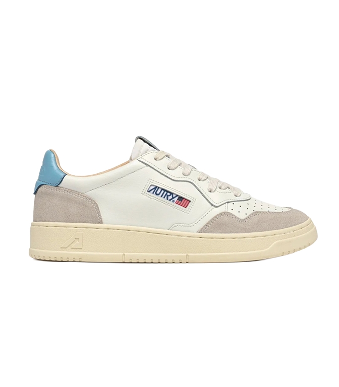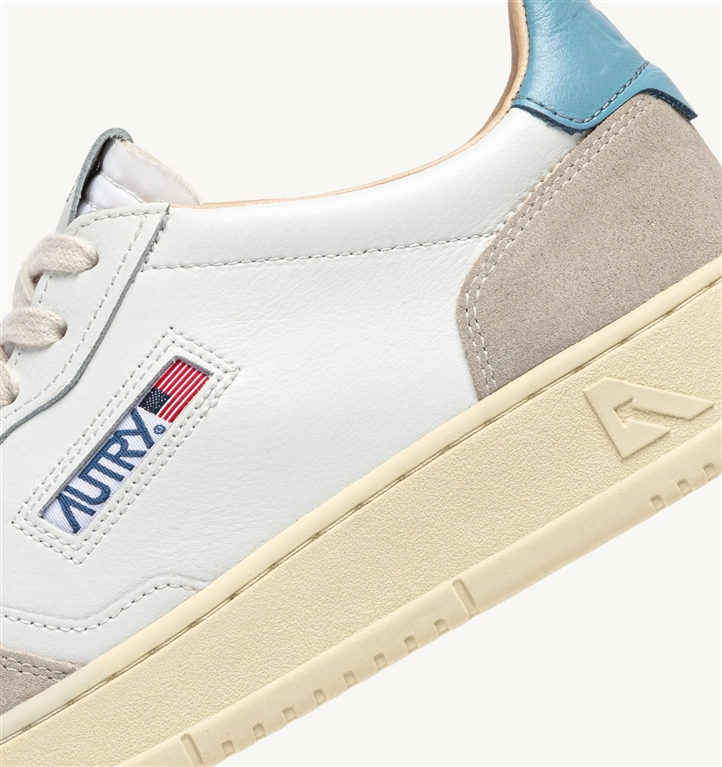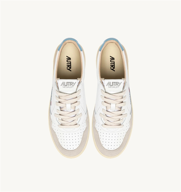 MEDALIST LOW IN PELLE BIANCA E SUEDE OCEANO