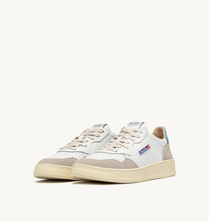 MEDALIST LOW IN PELLE BIANCA E BLU E SUEDE BEIGE