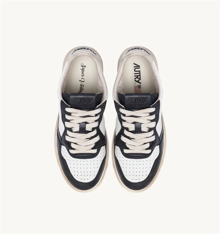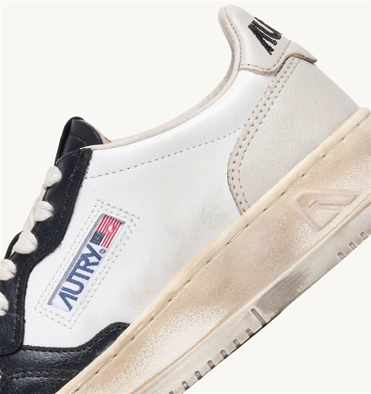 MEDALIST LOW SUPER VINTAGE IN PELLE BIANCA ANTRACITE E BLU
