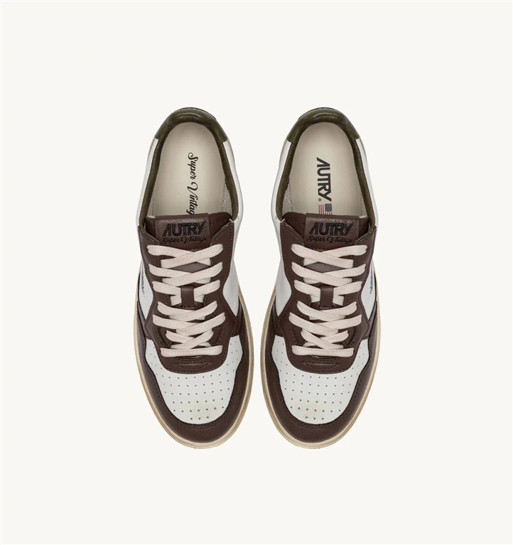 MEDALIST LOW SUPER VINTAGE IN PELLE BIANCA MILITARY E MARRONE