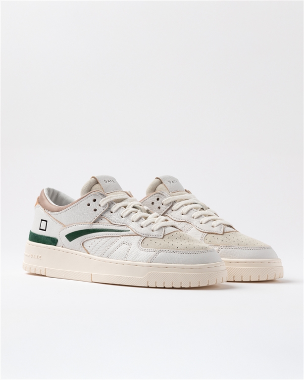 Sneakers bassa in pelle pelle martellata colore bianco e suede colore avorio.
