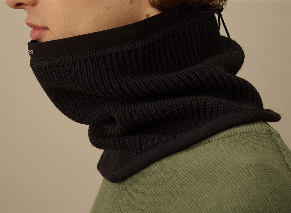Scaldacollo realizzato in lana merino extrafine. La lavorazione a costine garantisce calore e comfort. Completo di regolatore elastico per una vestibilità personalizzata e bordature rinforzate.