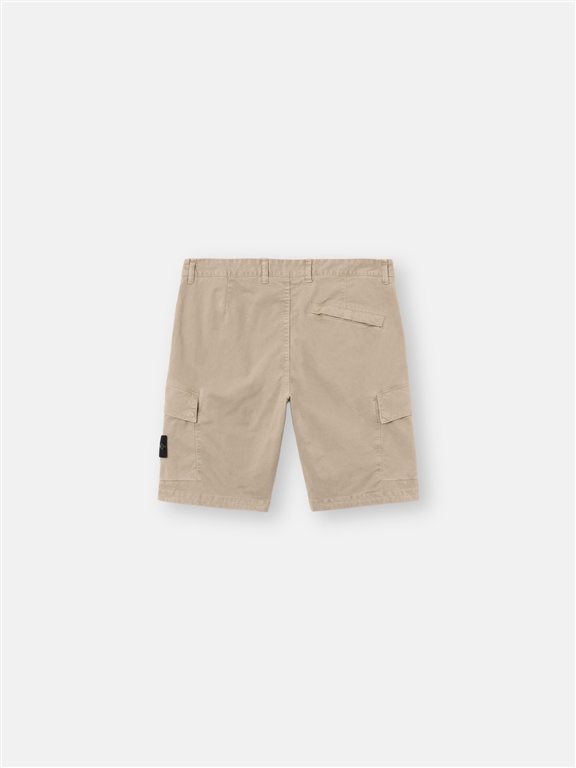 Shorts cargo in broken twill di cotone biologico stretch, con tasche multiple e cuciture asimmetriche. Modello tinto in capo con effetto OLD, per un aspetto leggermente vissuto.Bermuda cargo in broken twill di cotone biologico stretch. Modello tinto in capo con il trattamento OLD, unesclusiva tecnica di tintura e successivo scolorimento sul capo finito che gli conferisce un aspetto tridimensionale e leggermente vissuto.