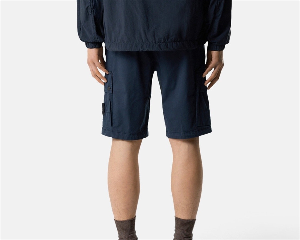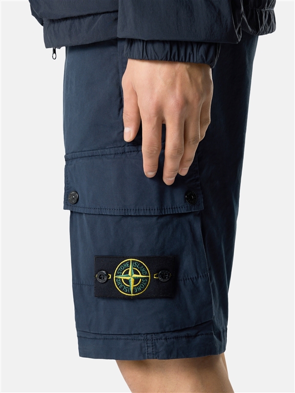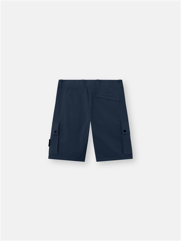 Bermuda cargo in twill di cotone biologico stretch dotati di tasche con zip nascosta, tasche cargo con patta e tasca posteriore con bottone automatico. Modello tinto in capo.Bermuda cargo in twill di cotone biologico stretch. Modello tinto in capo.