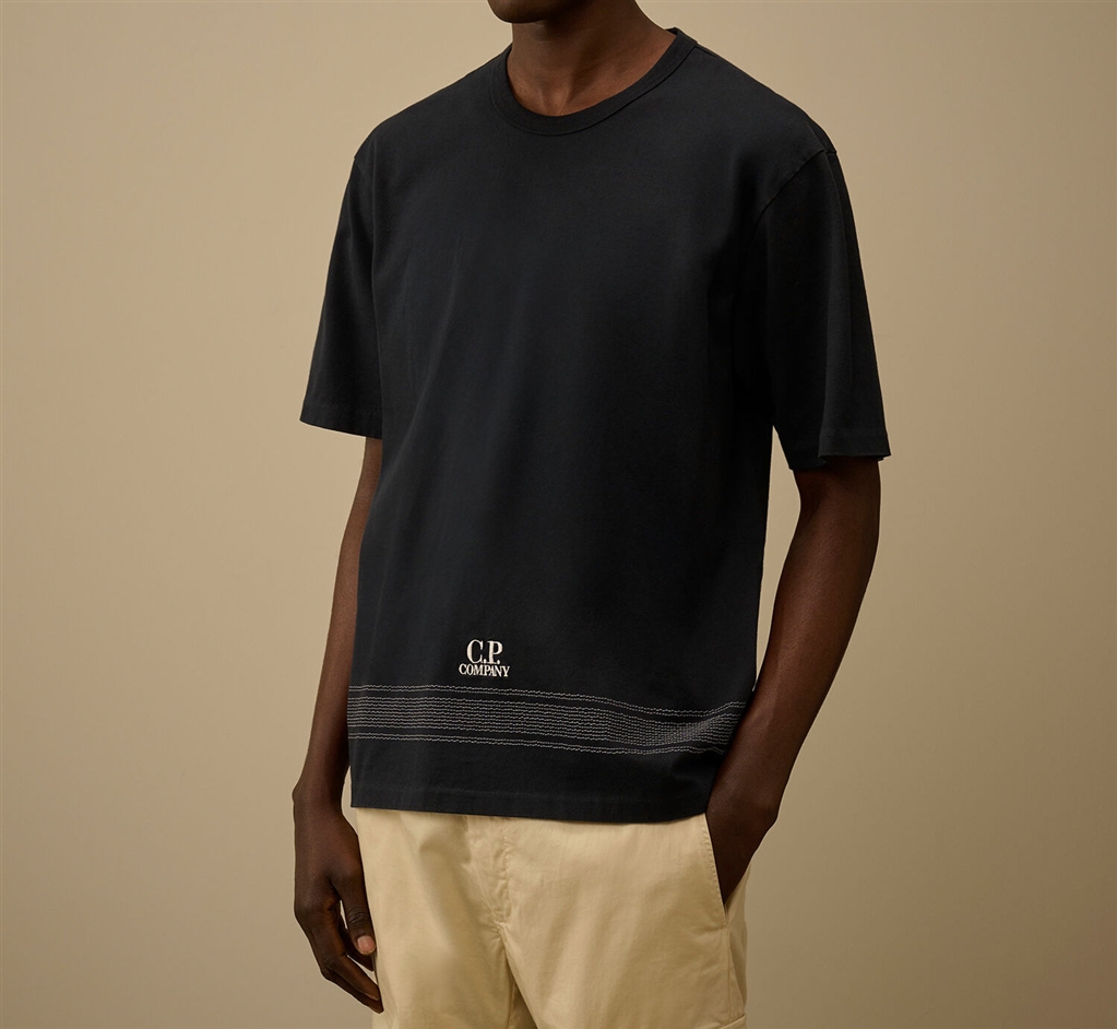 MERCERIZED JERSEY 30/2 TWISTED SHORT SLEEVE EMBROIDERY T-SHIRT TOTAL ECLIPSE - BLUE