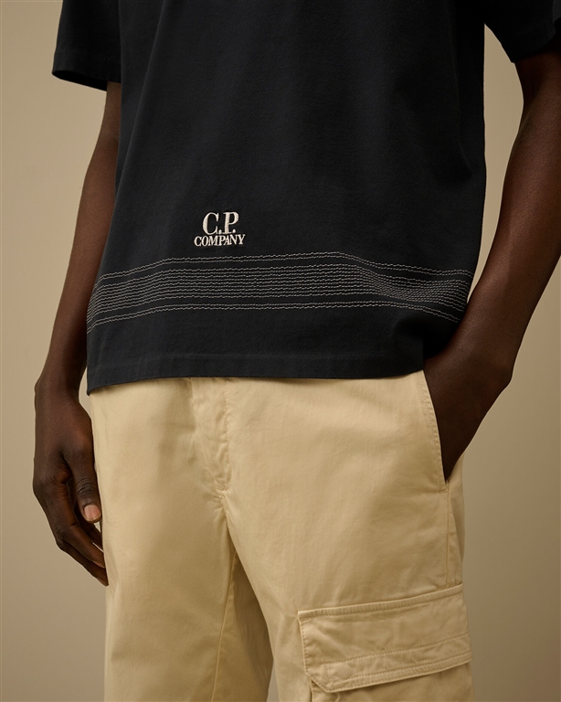 T-shirt a maniche corte realizzata in jersey di cotone mercerizzato 30/2 ritorto. La mercerizzazione è un trattamento che dona al tessuto una finitura più lucida. Il modello presenta un girocollo a costine e un ricamo con logo sullorlo. Made in Italy. Regular fit.