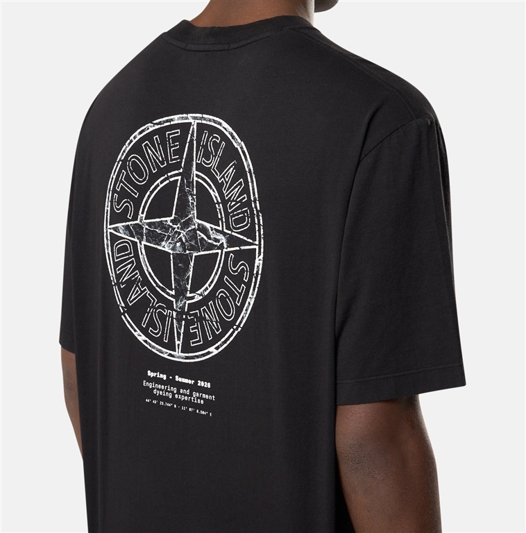 T-shirt a manica corta in jersey di cotone biologico caratterizzata da una stampa con logo e testo, e un grande motivo Compass dalleffetto invecchiato sul retro. Modello tinto in capo.T-shirt a manica corta in jersey di cotone biologico con stampa Stone. Modello tinto in capo.