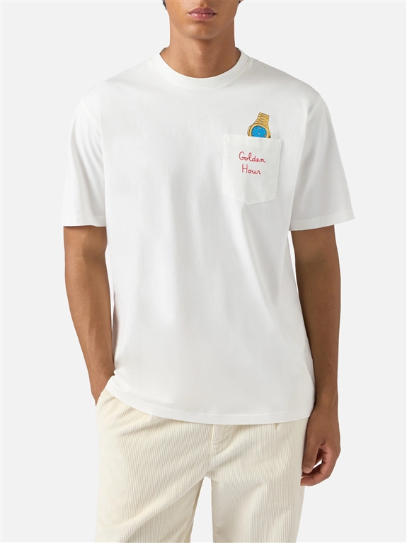 AUSTIN01981L T-SHIRT CONNOR IN COTONE BIANCO CON RICAMO SUL TASCHINO GOLDEN HOUR