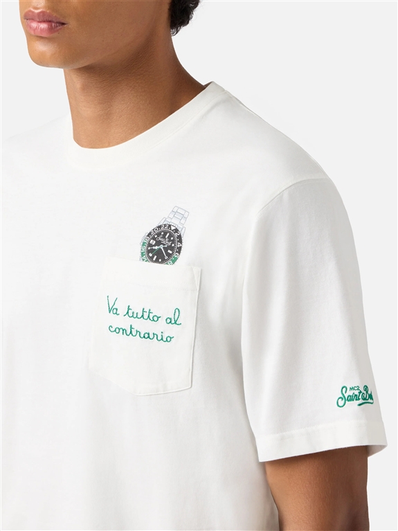 AUSTIN00129L T-SHIRT CONNOR IN COTONE BIANCO CON RICAMO SUL TASCHINO VA TUTTO AL CONTRARIO