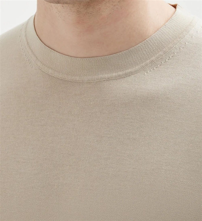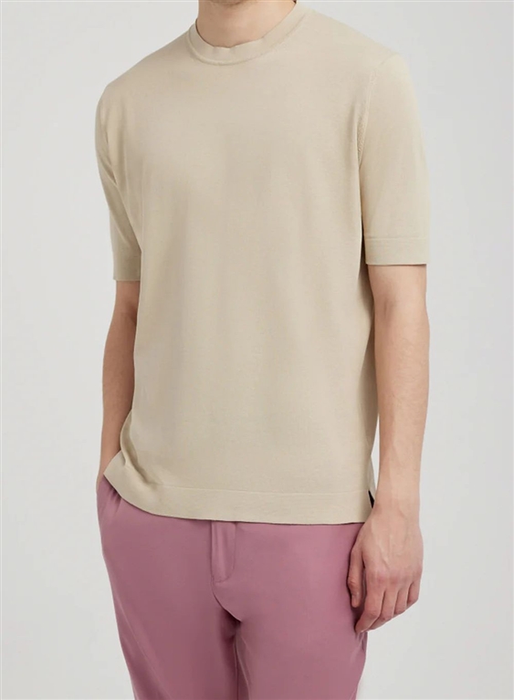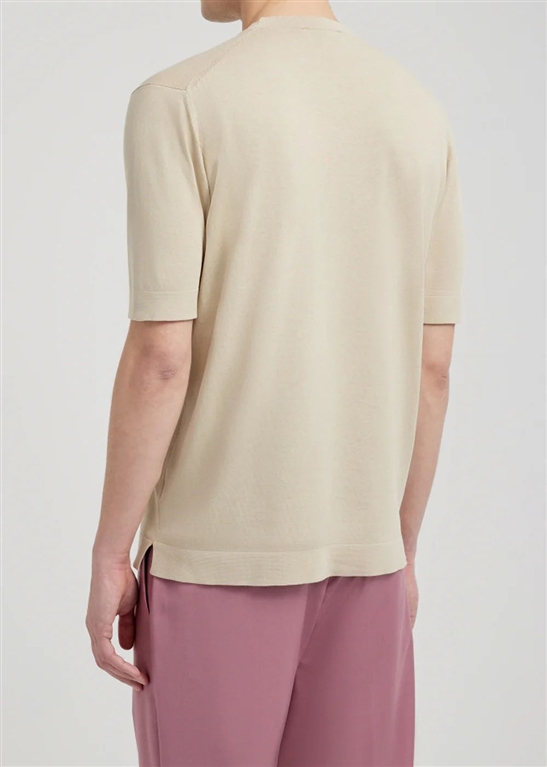 T-shirt in crepe di cotone girocollo e giro manica colore beige
