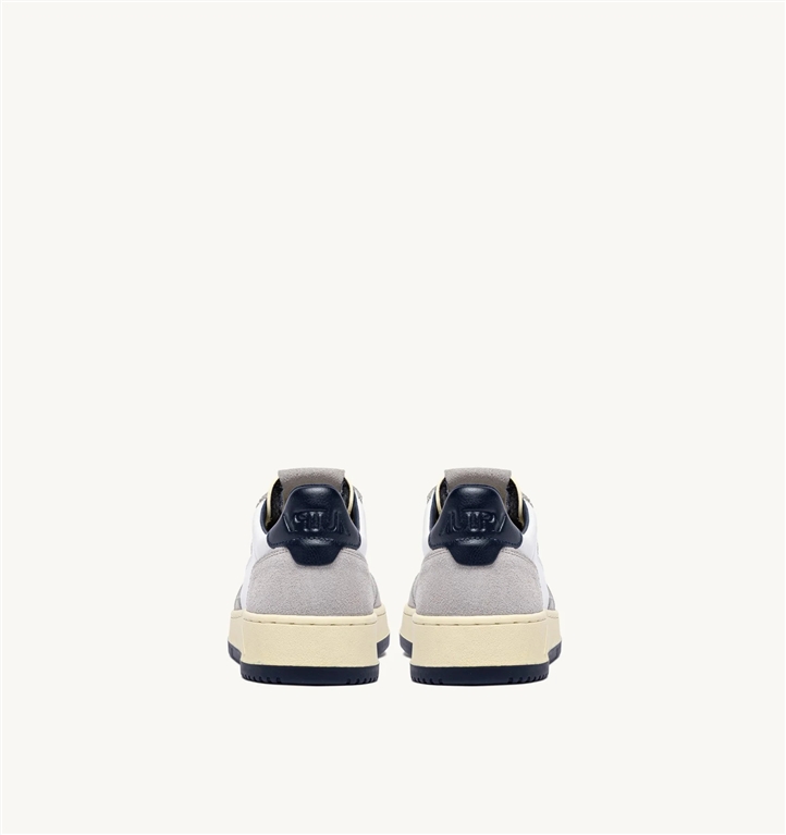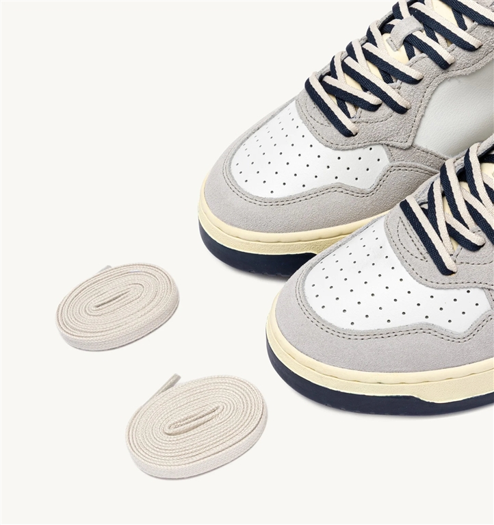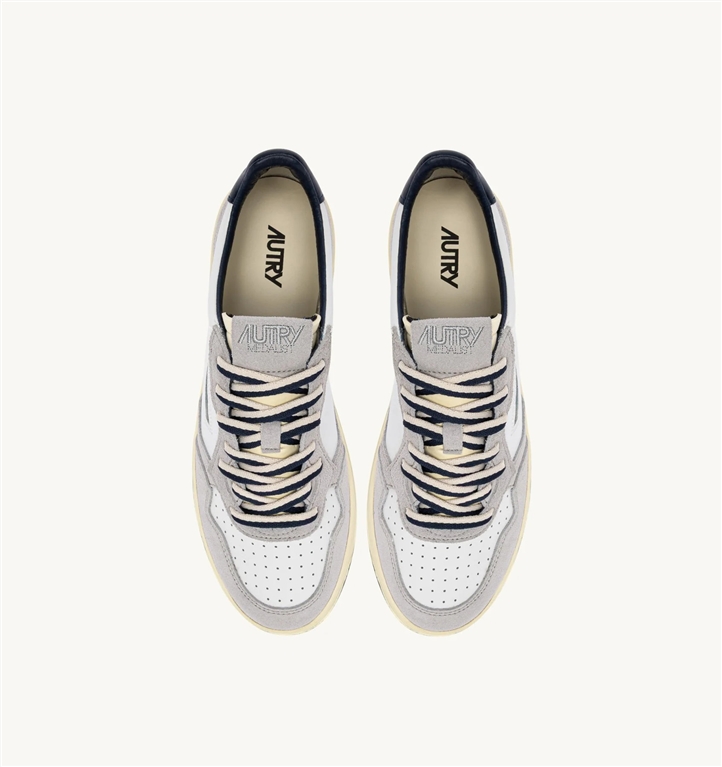 MEDALIST LOW IN WHITE AND BLUE LEATHER AND BEIGE SUEDE