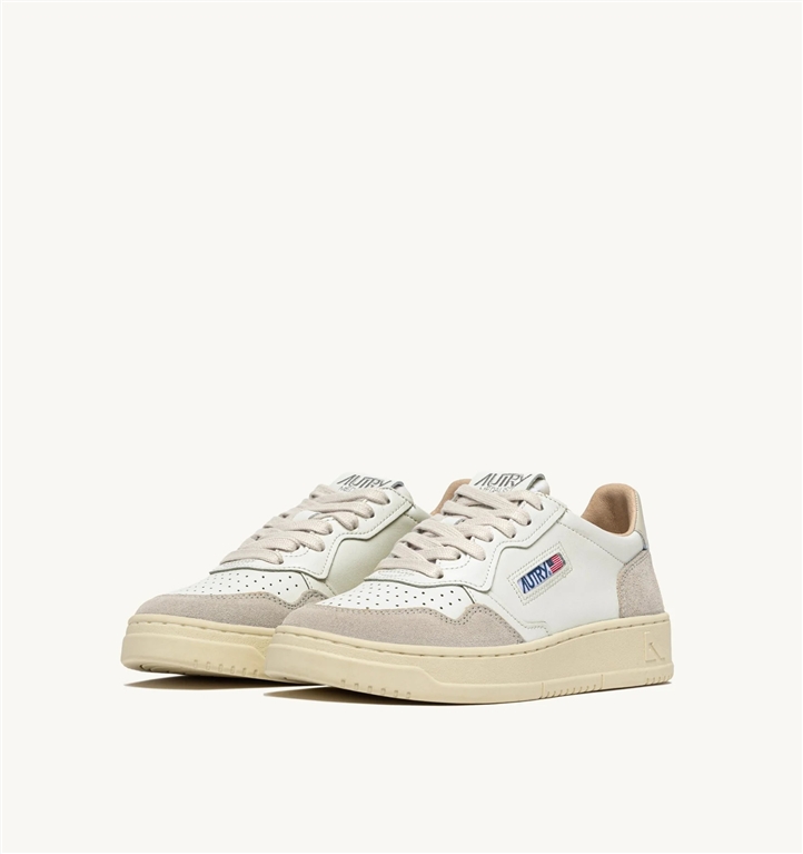 LOW -LEATHER MEDALIST SNEAKERS IN WHITE LEATHER AND MOUNTAIN AND BEIGE SUEDE
