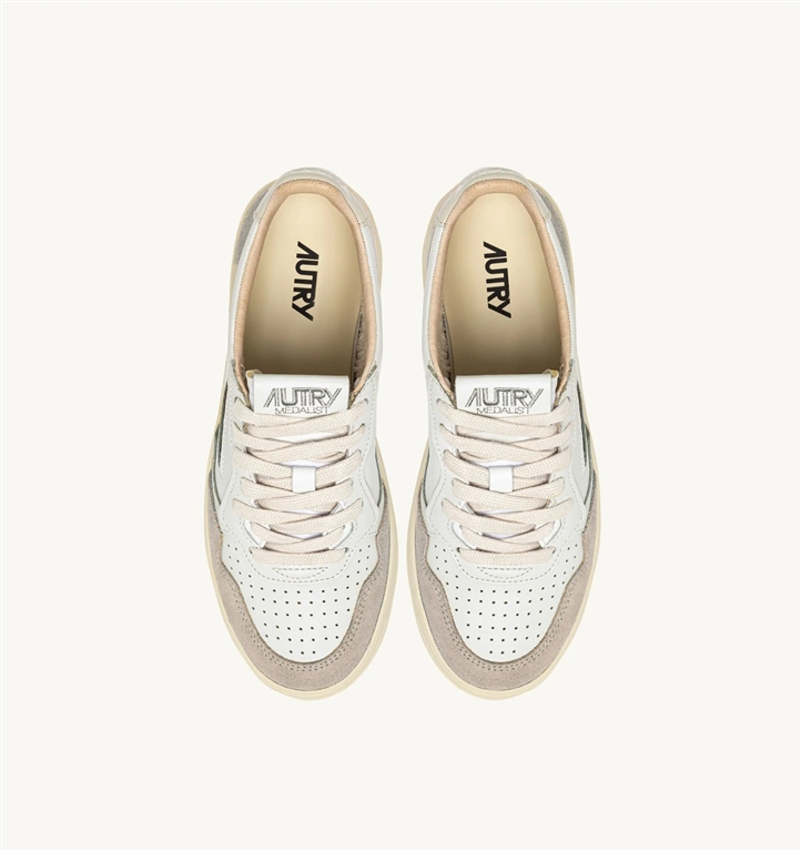 MEDALIST LOW IN WHITE AND PELICAN SUEDE AND LEATHER