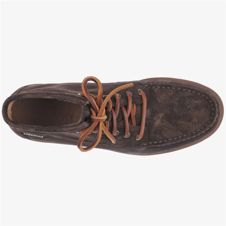The Tala boot is a tribute to the Sebago origins and is inspired in the style and construction of the footwear of Native Americans. This model is made of suede leather treated with a rich combination of oils for a sought -after tactile effect. It is characterized by traditional zigzag seams and the closure with square laces in leather, typical of the Navajo tradition. The bottom is finished in light Eva carved in relief to offer good grip on all surfaces.