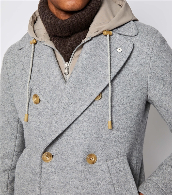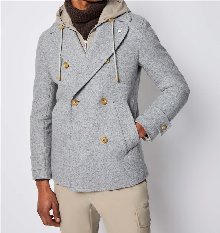 PECOAT WITH LIGHT GRAY HOOD PEACOUAT WITH LIGHT GRAY HOOD